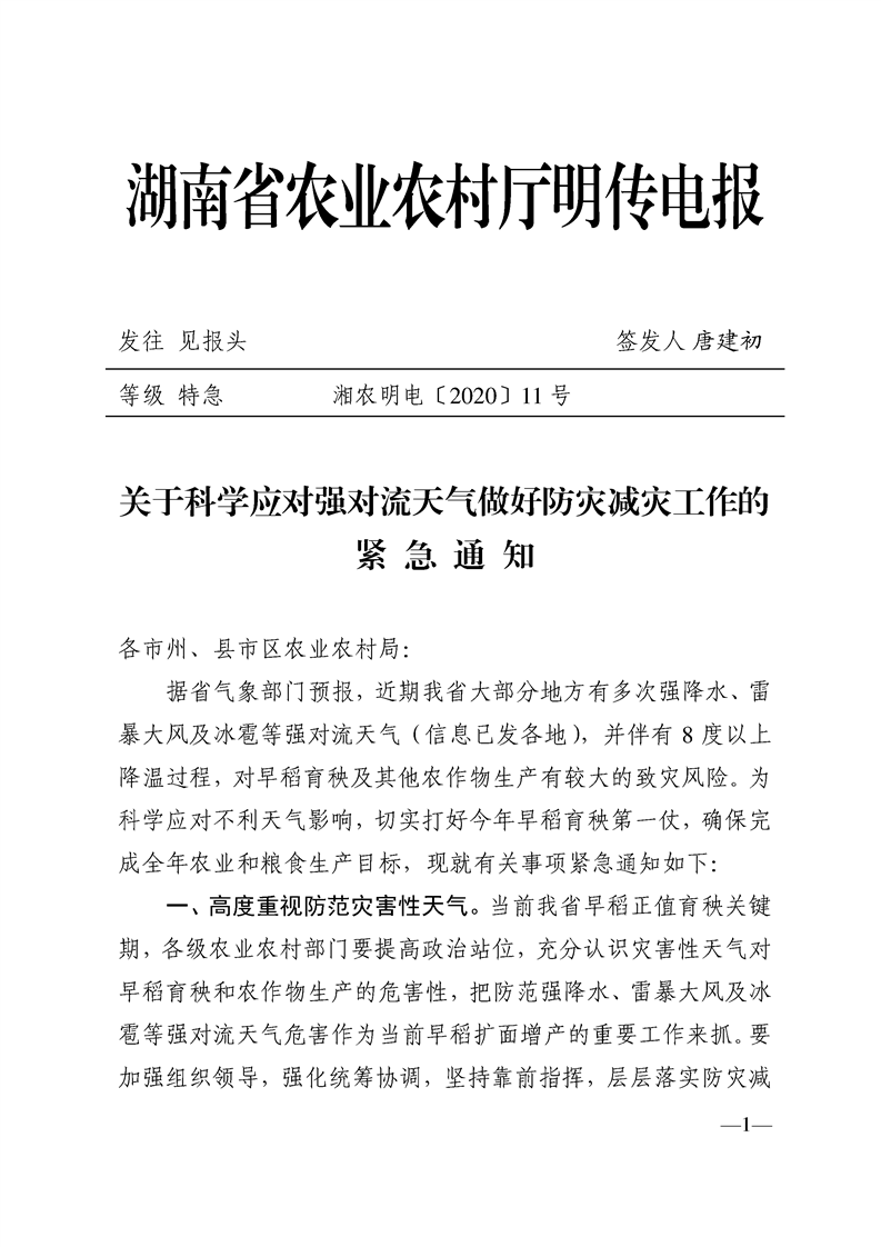 湖南省农业农村厅关于科学应对强对流天气做好减灾防灾工作的紧急通知