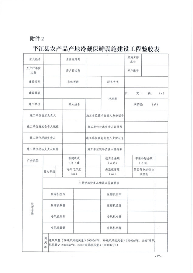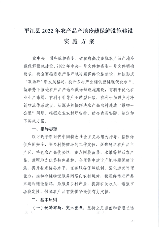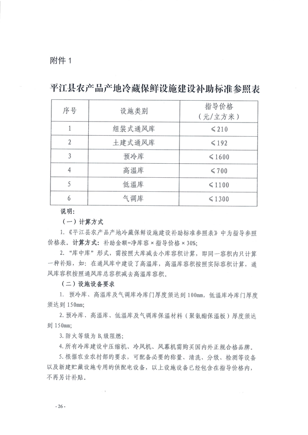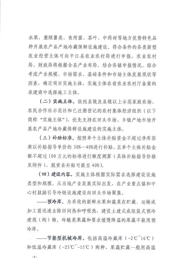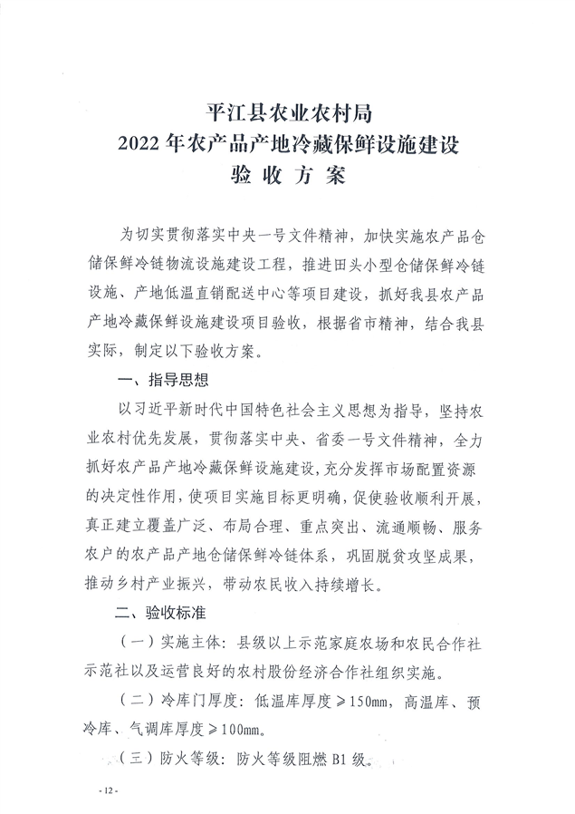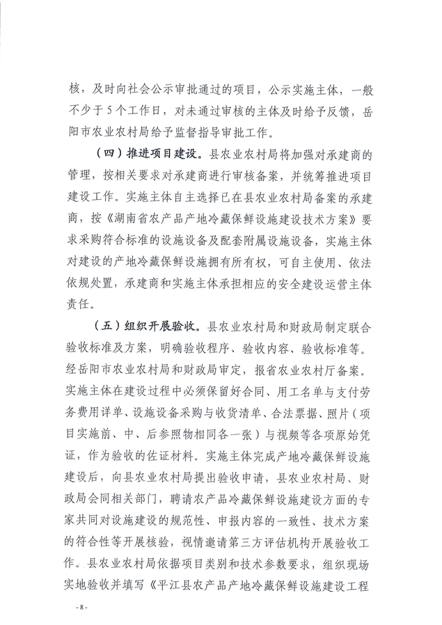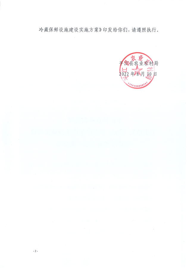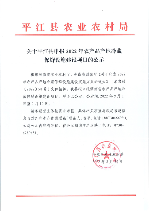 关于平江县申报2022年农产品产地冷藏保鲜设施建设项目的公示