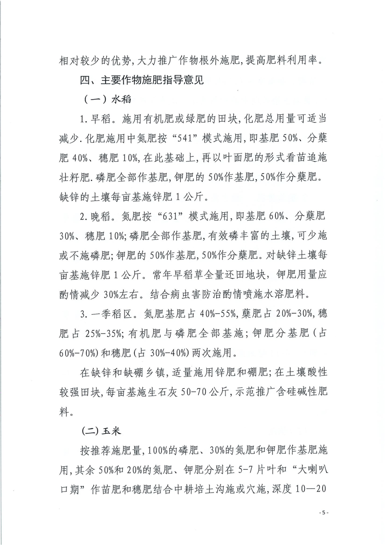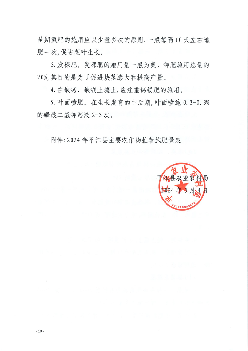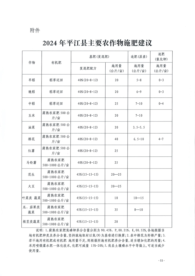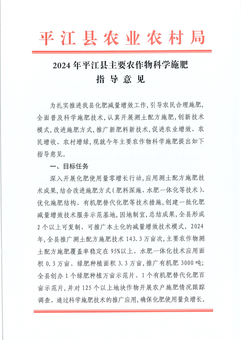 2024年平江县主要农作物科学施肥指导意见