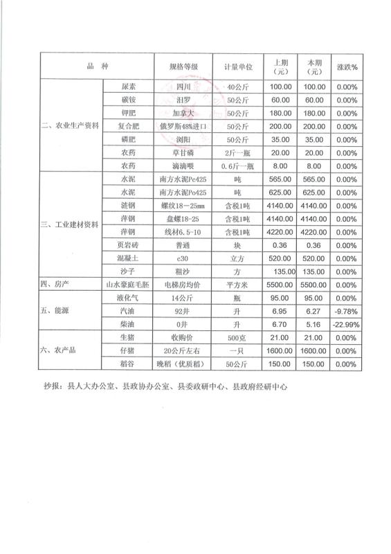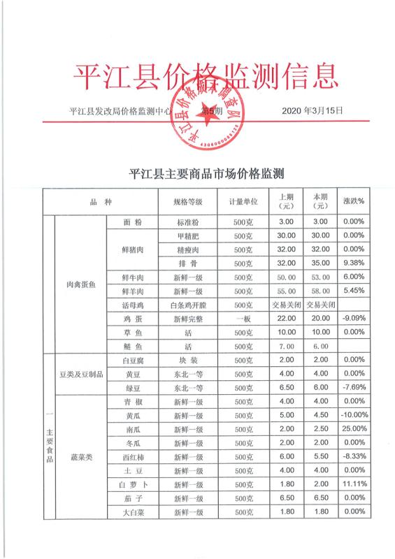 平江县价格监测信息2020年第五期