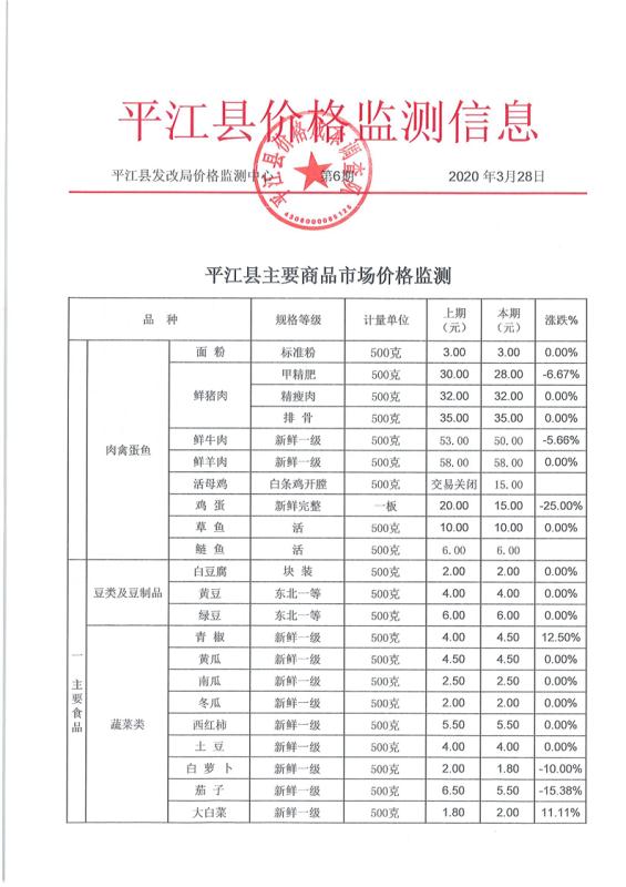平江县价格监测信息2020年第六期