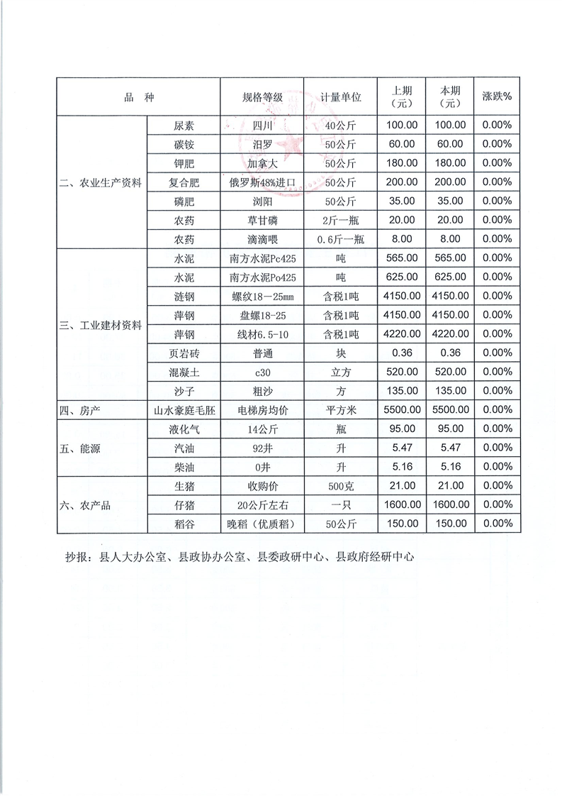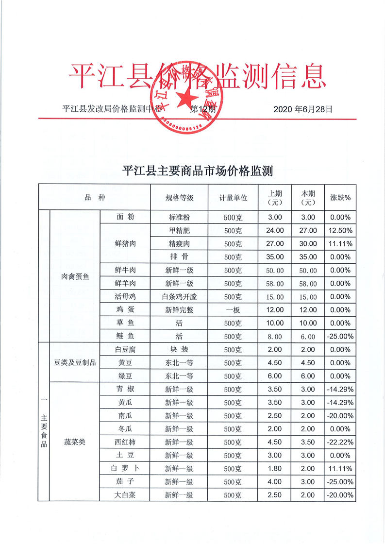 平江县价格监测信息2020年第12期
