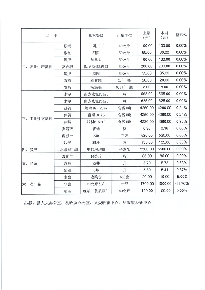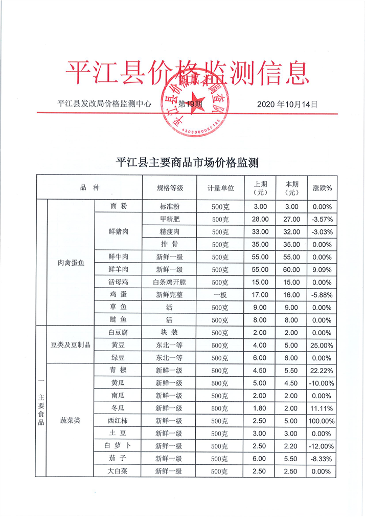 平江县价格监测信息2020年第19期