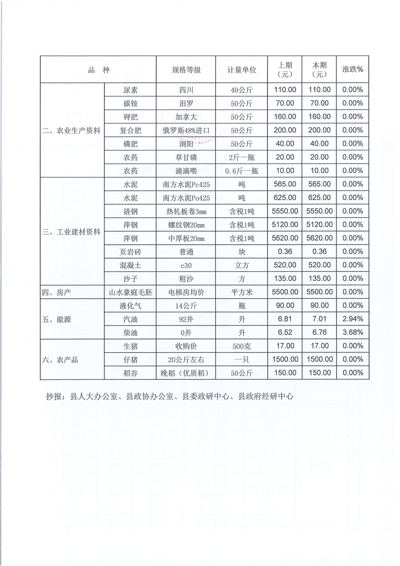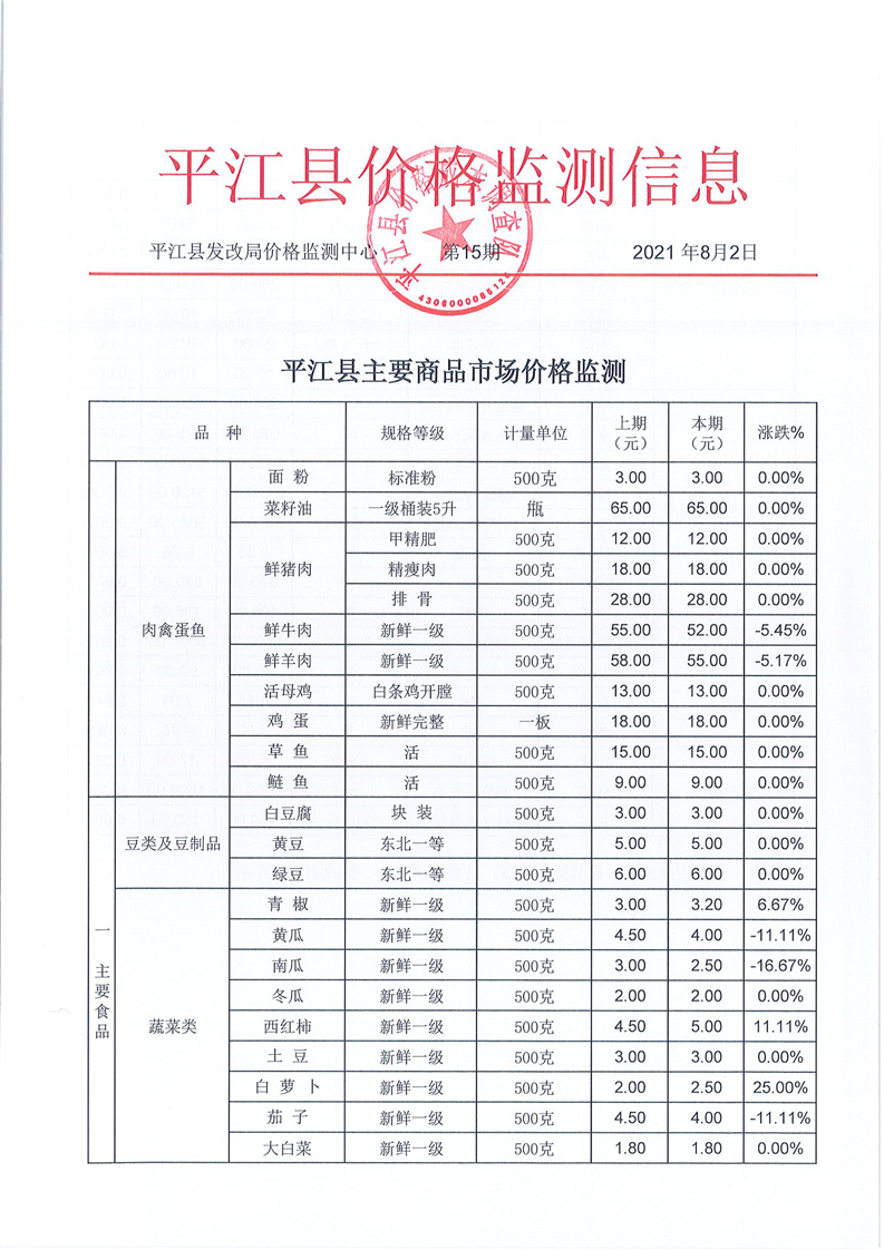 平江县价格监测信息2021年第15期