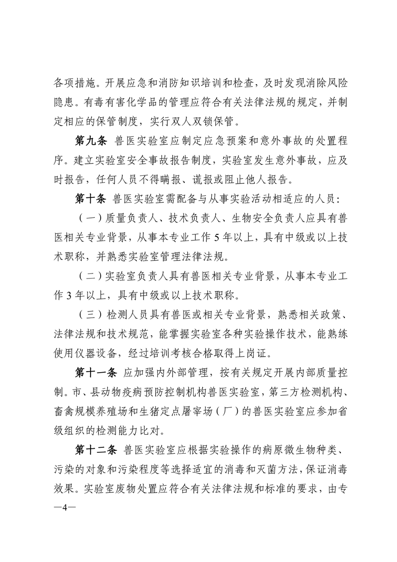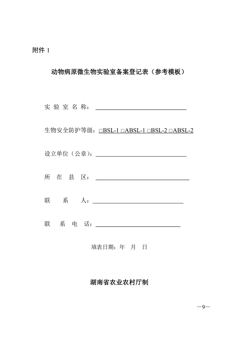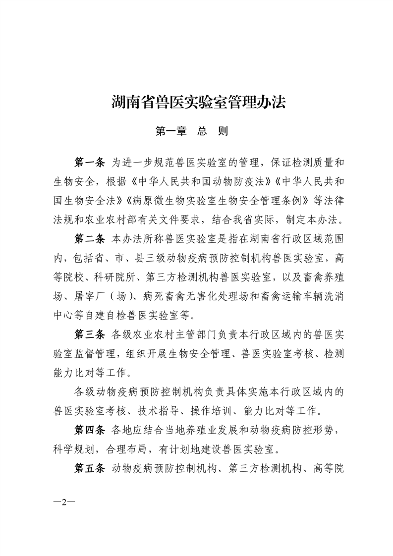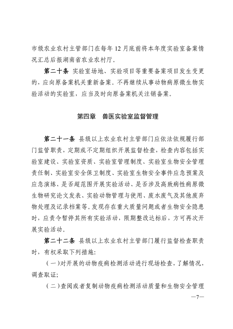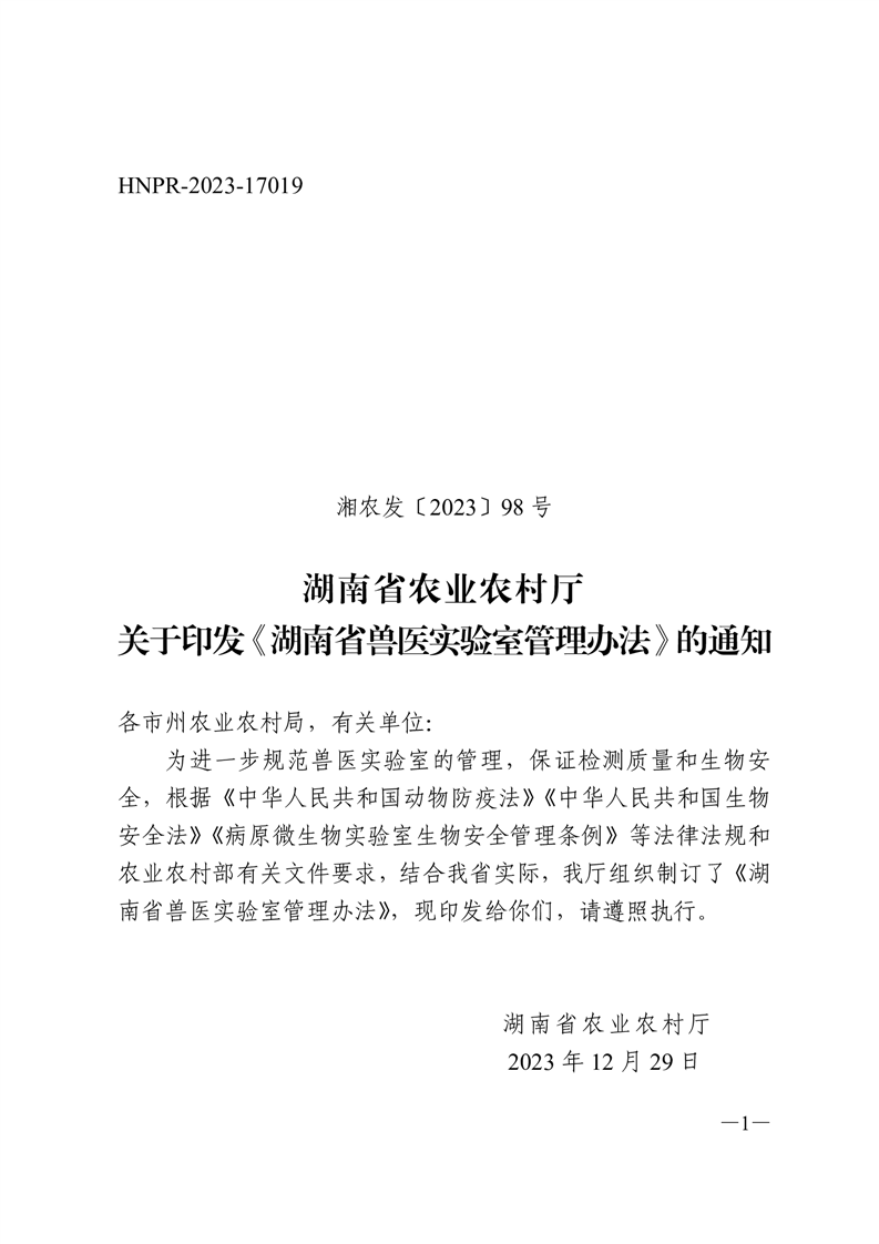 湖南省农业农村厅关于印发《湖南省兽医实验室管理办法》的通知