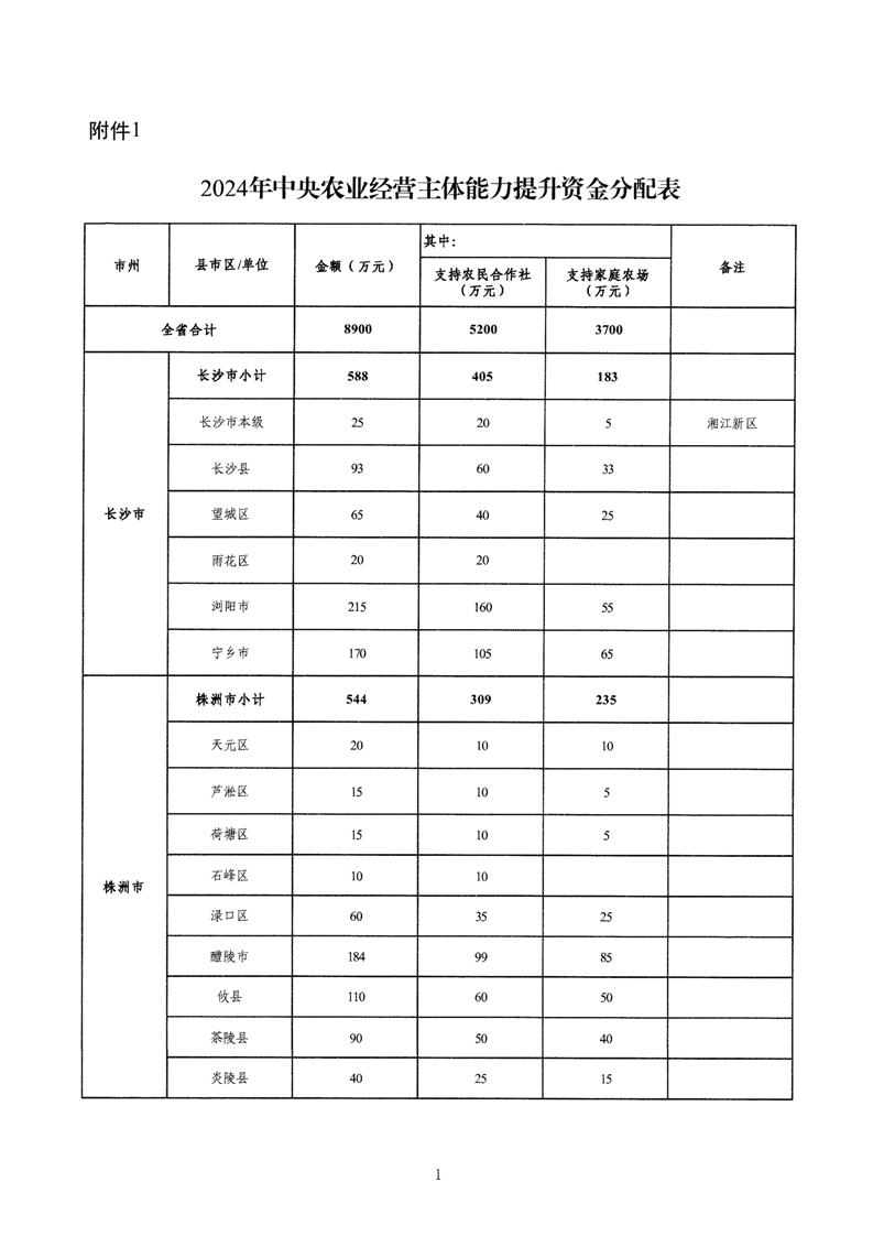 附件:1.2024年中央农业经营主体能力提升资金分配表