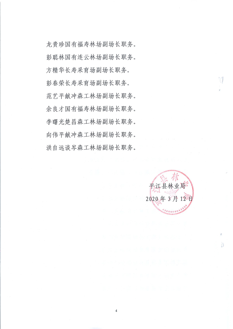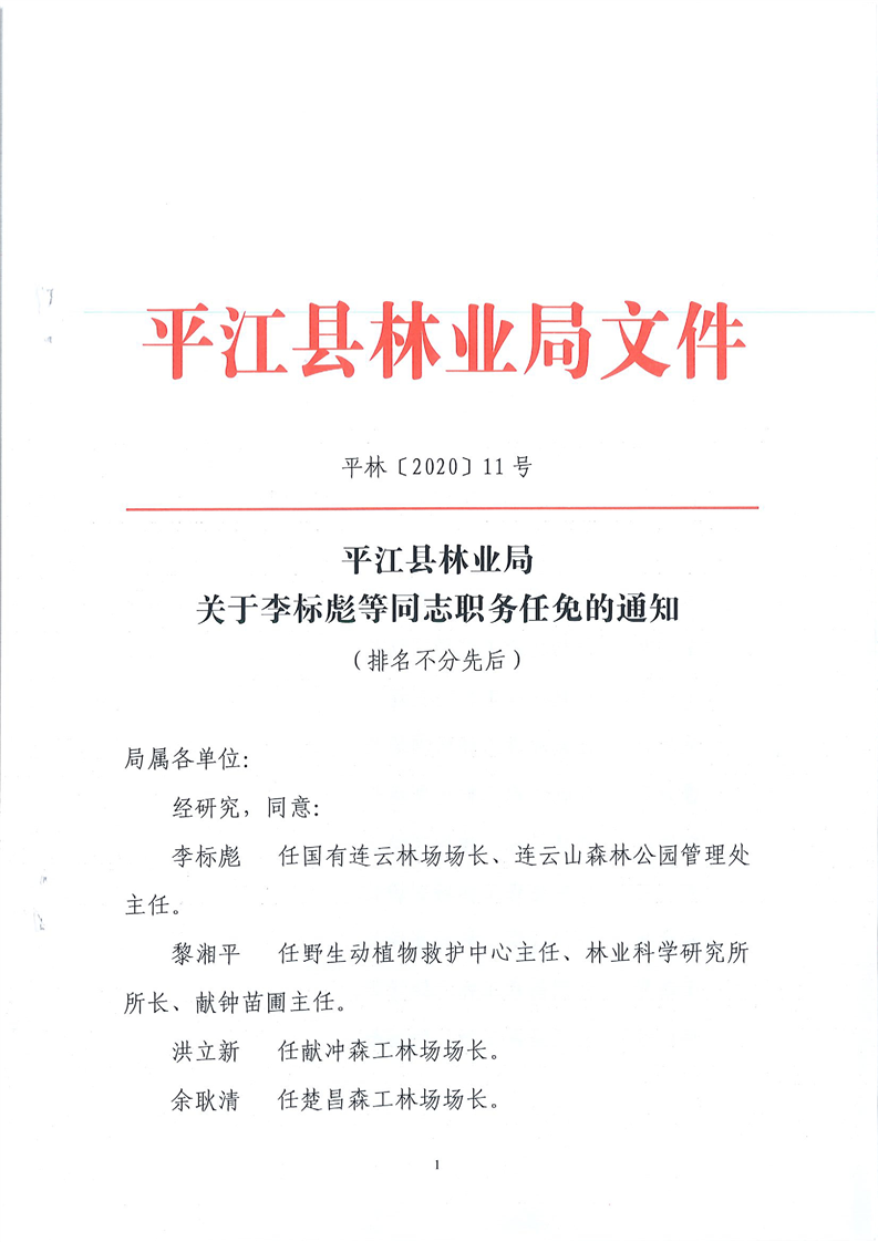 平江县林业局关于李标彪等同志职务任免的通知