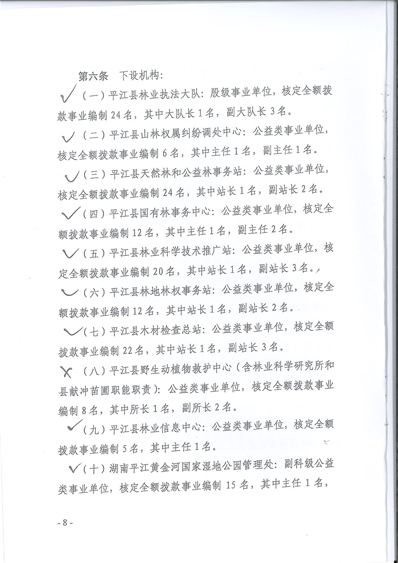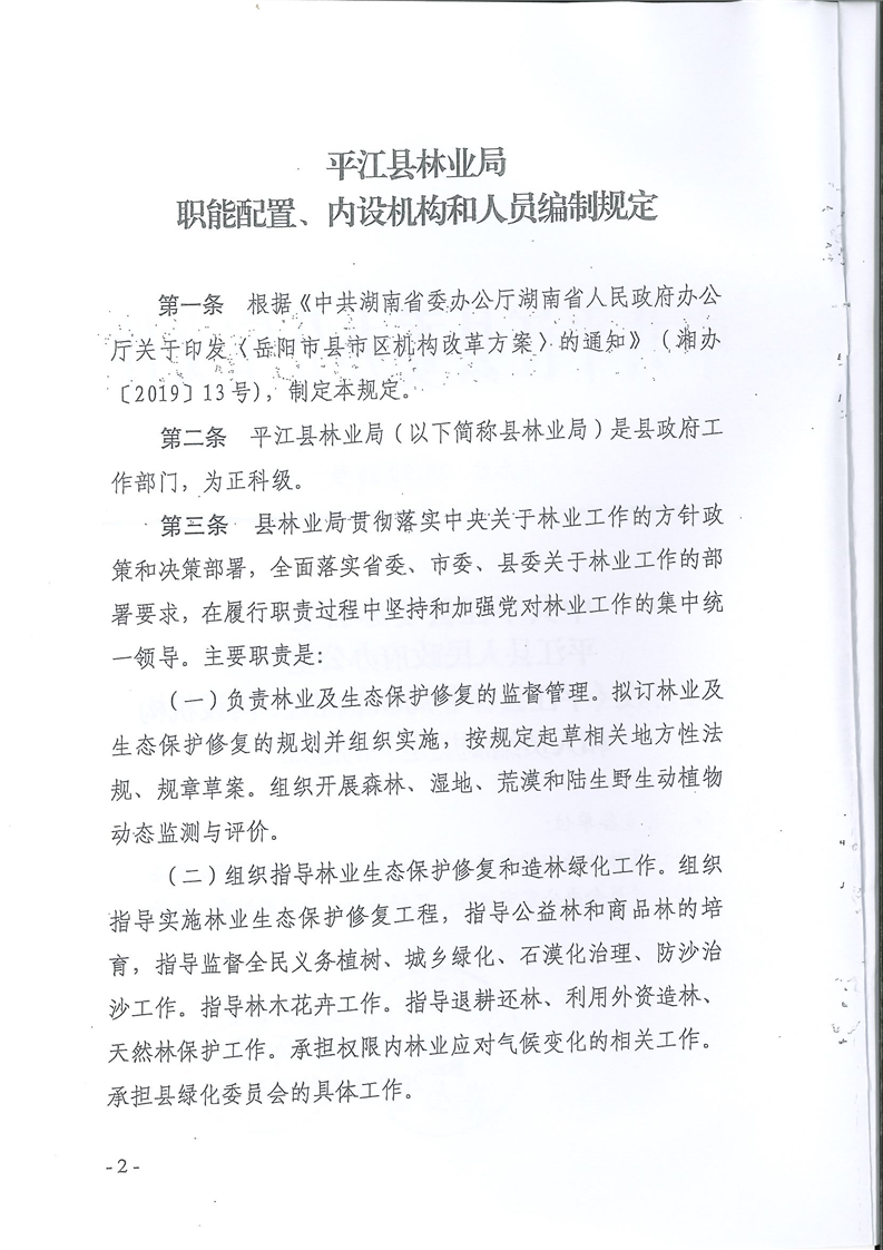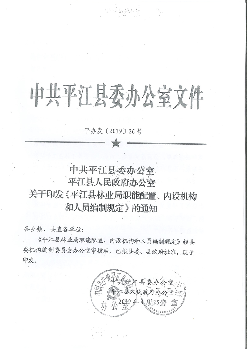 关于印发《平江县林业局职能配置、内设机构和人员编制规定》的通知