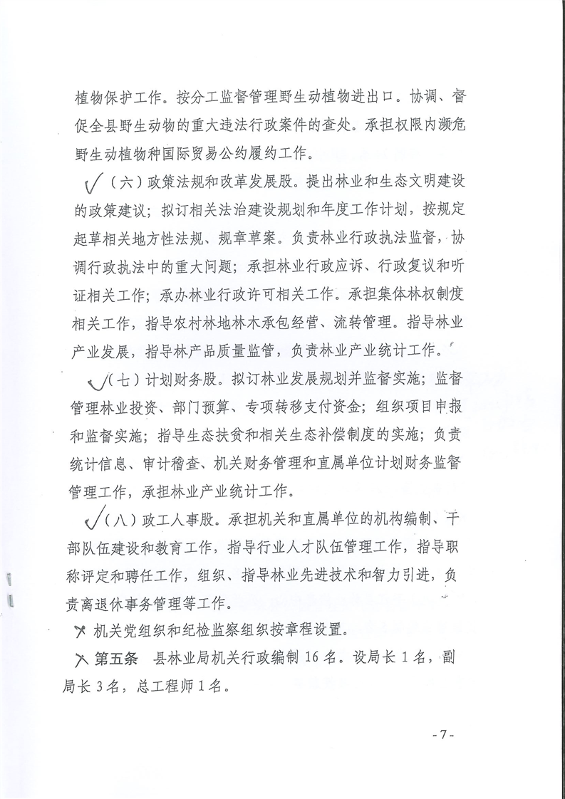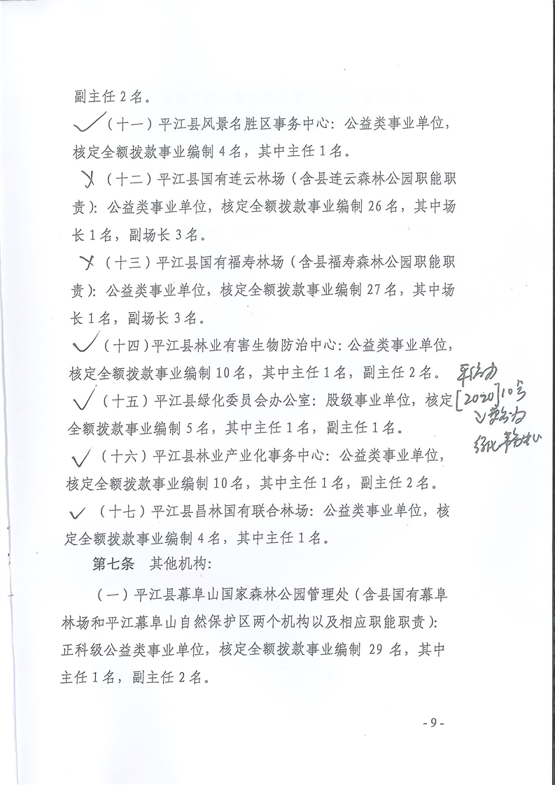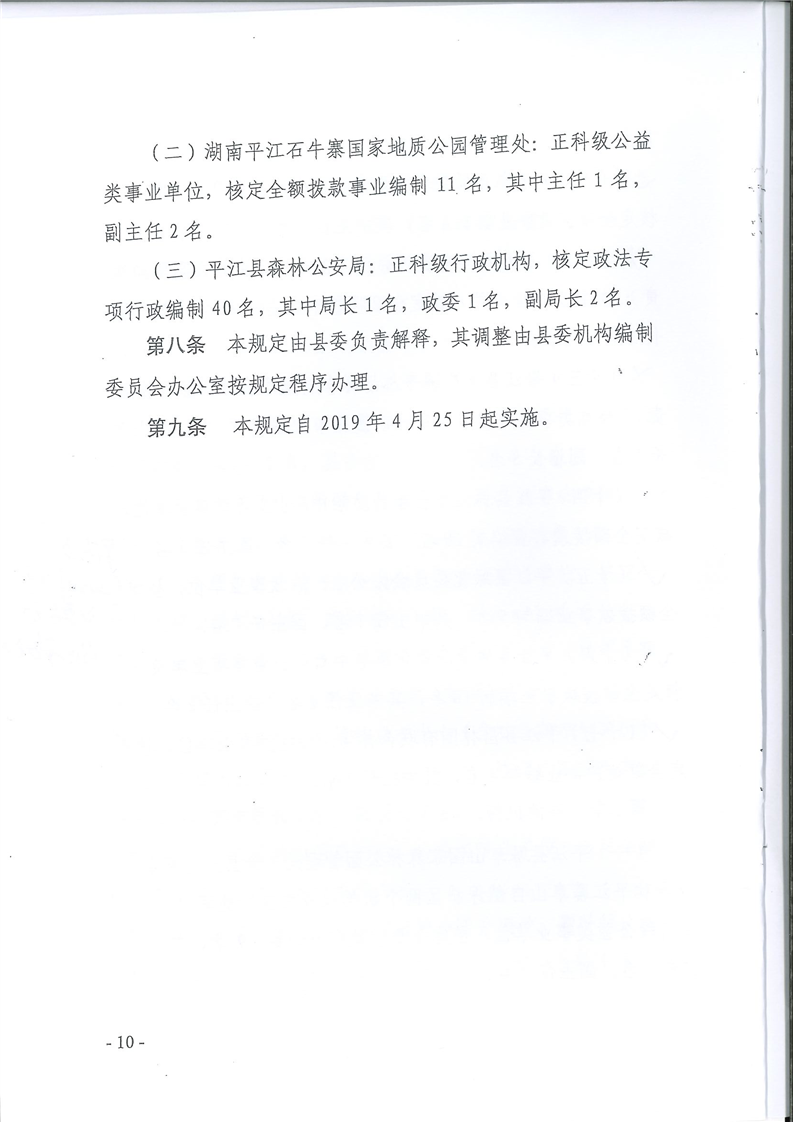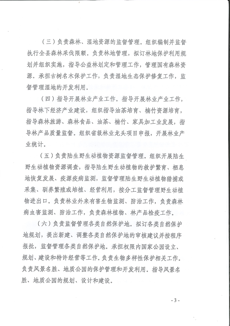关于印发《平江县林业局职能配置、内设机构和人员编制规定》的通知