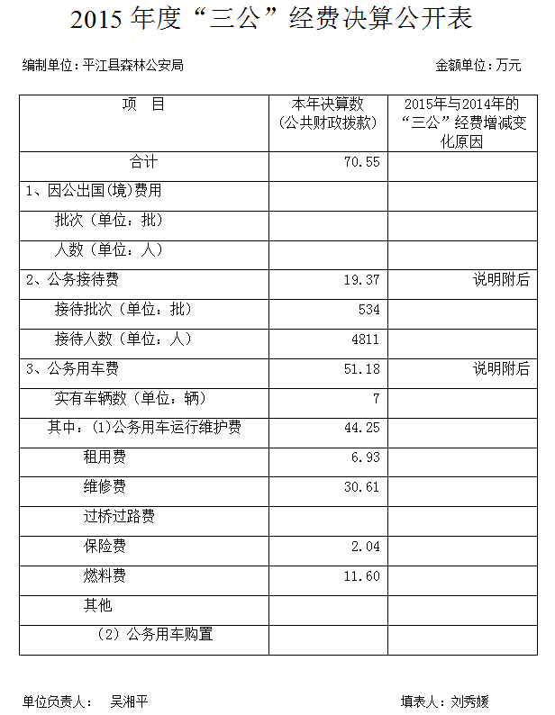 平江县森林公安局2015年度三公经费决算公开