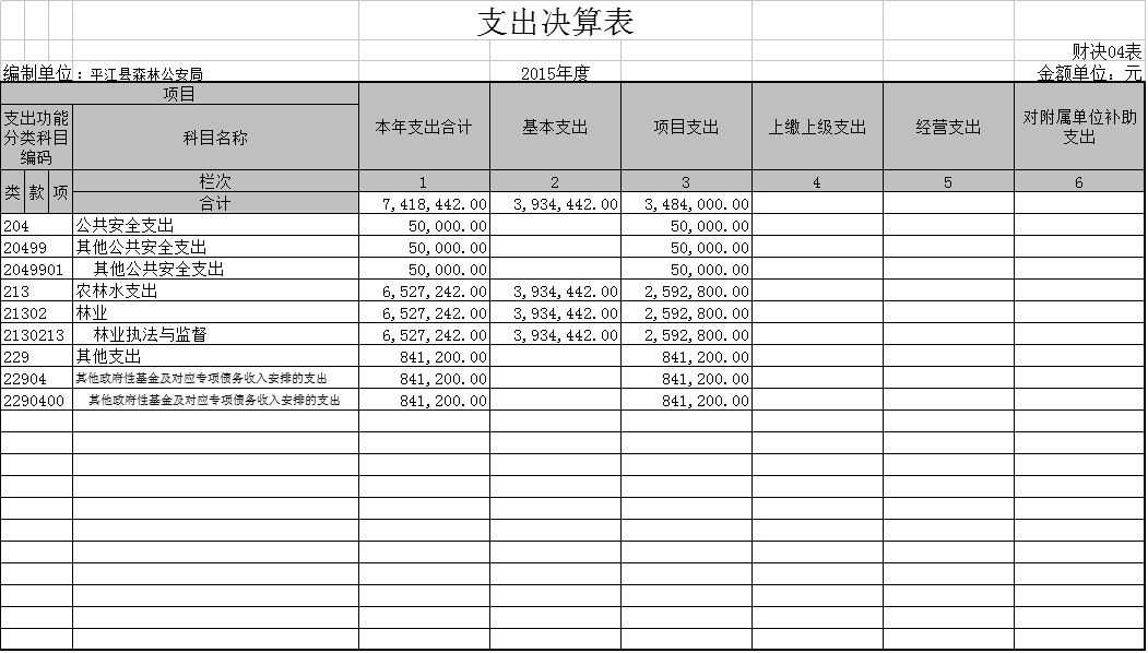 附件三:支出决算表-财决04表