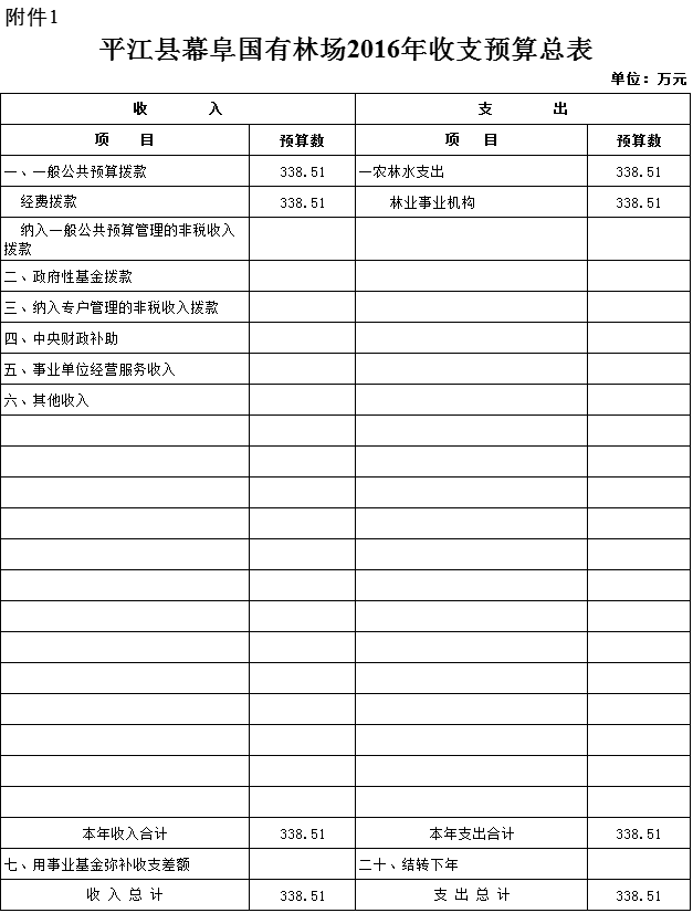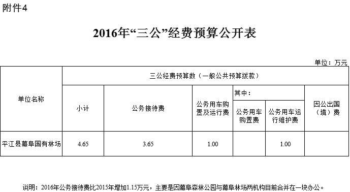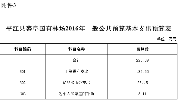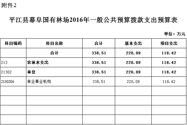 平江县幕阜国有林场2016年部门预算填报说明