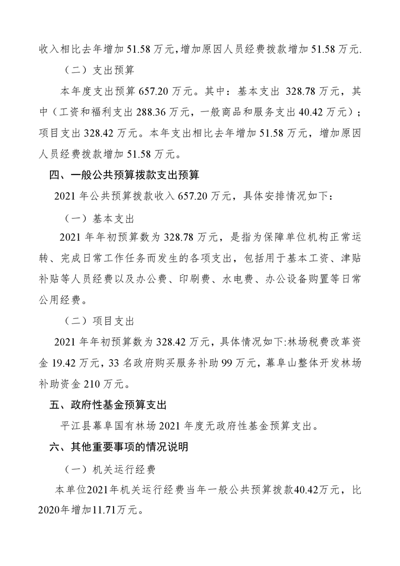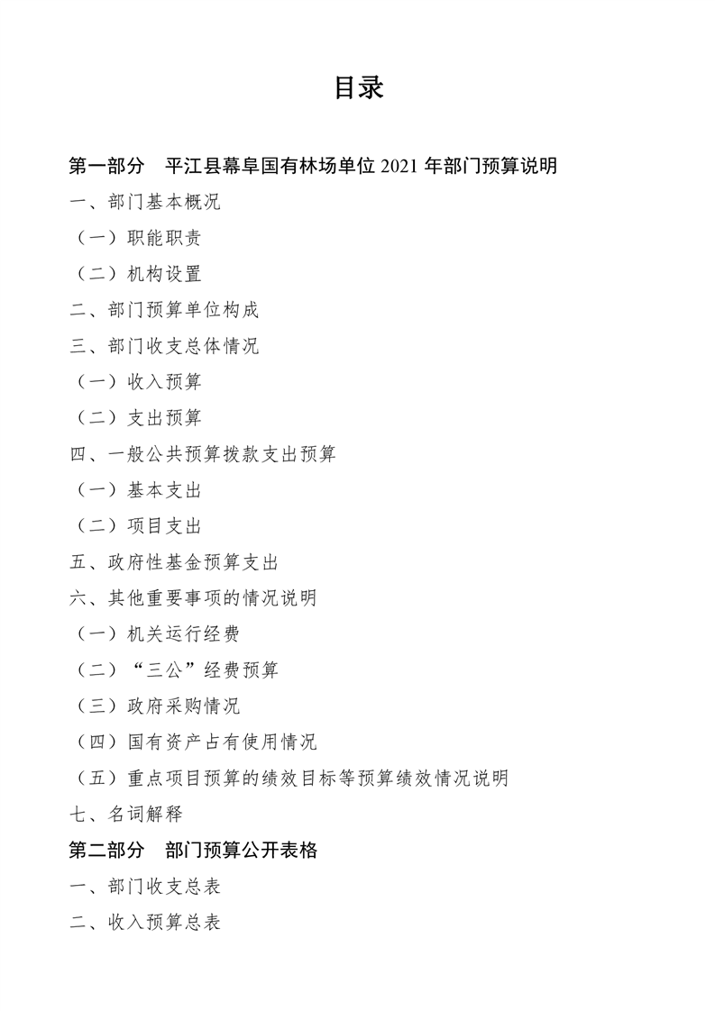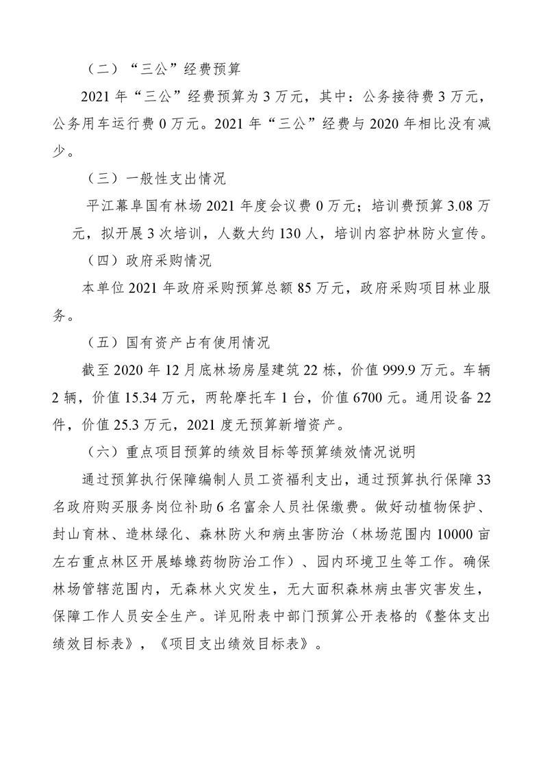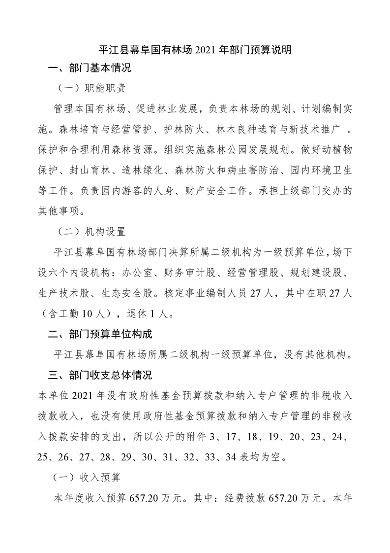 平江县幕阜国有林场2021年部门预算编报说明