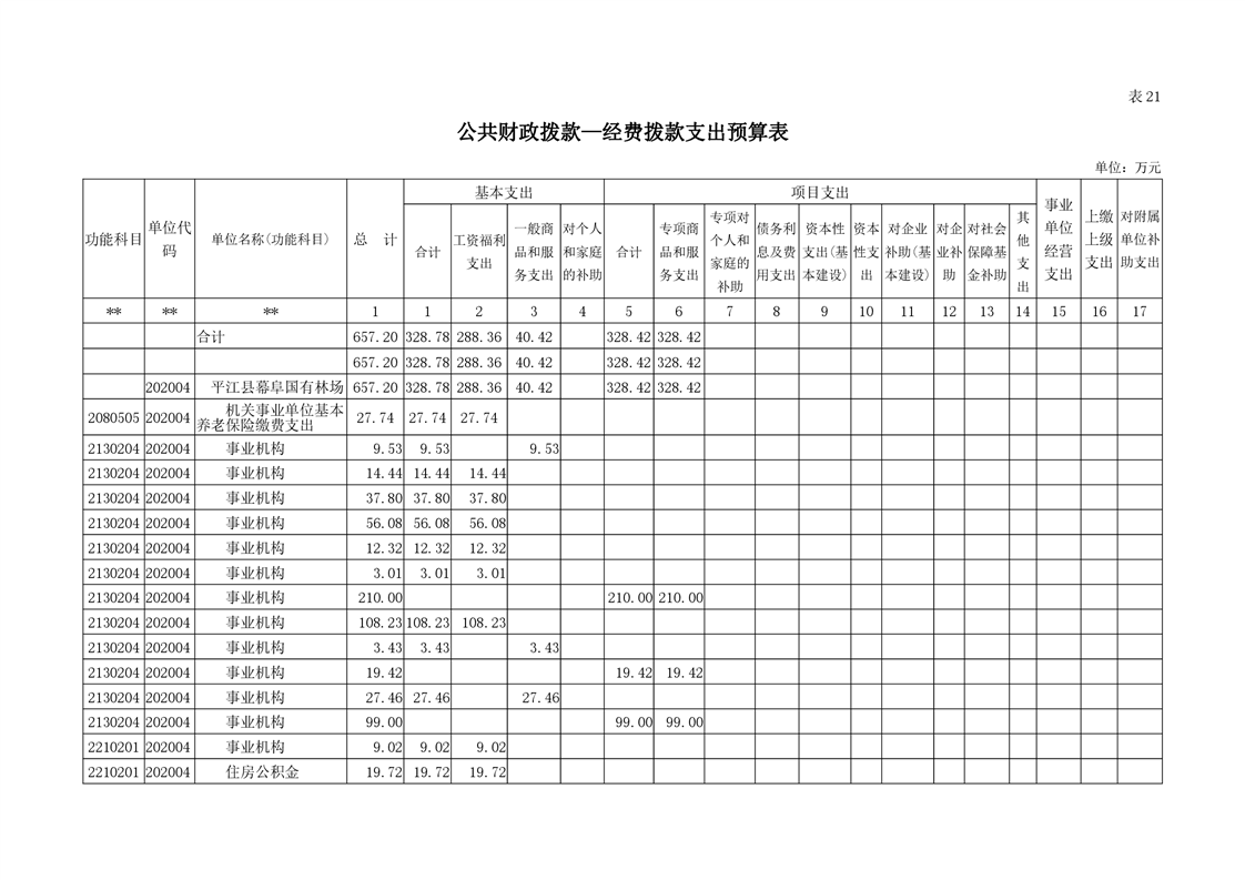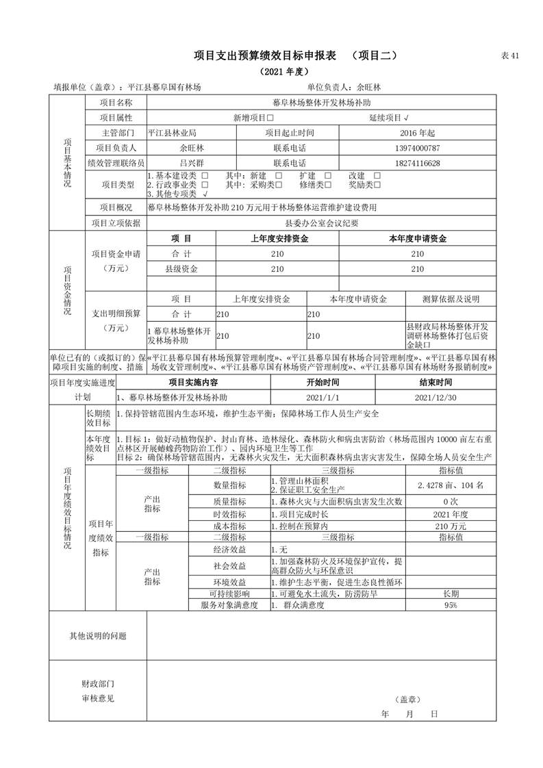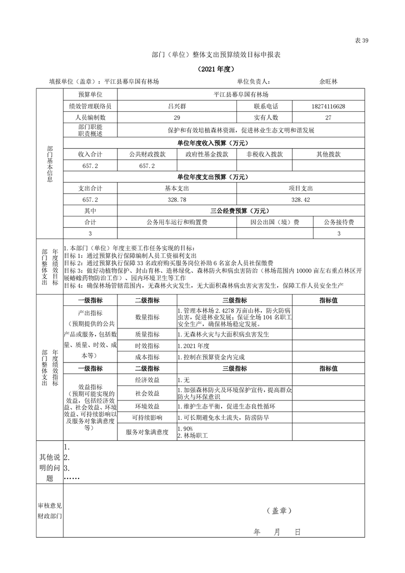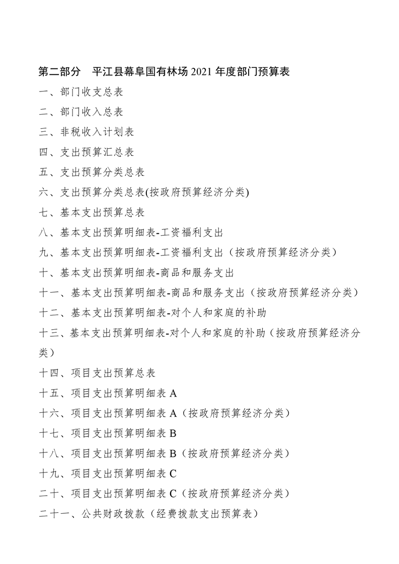 平江县幕阜国有林场2021年部门预算编报说明