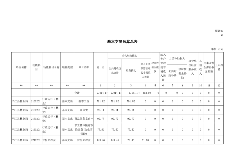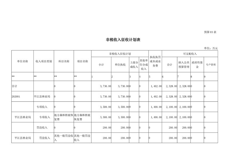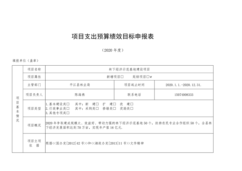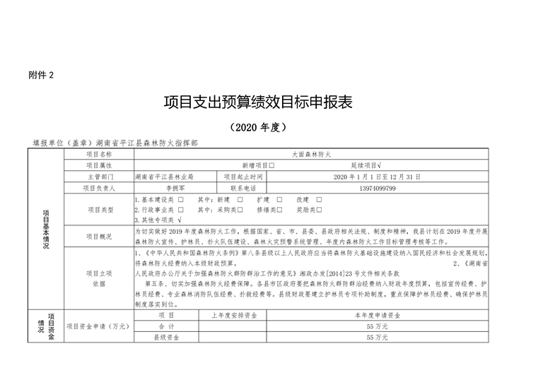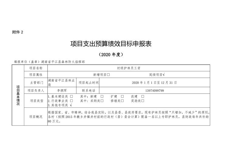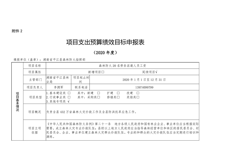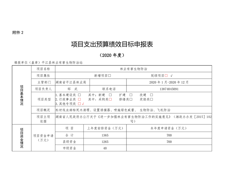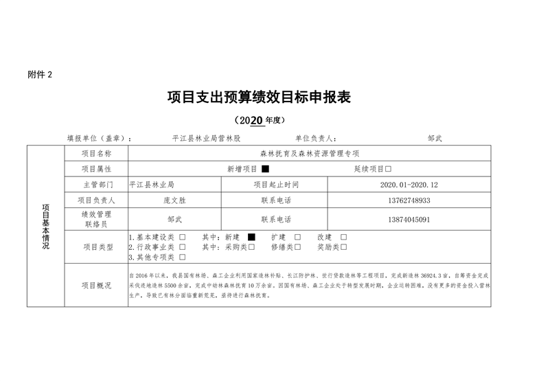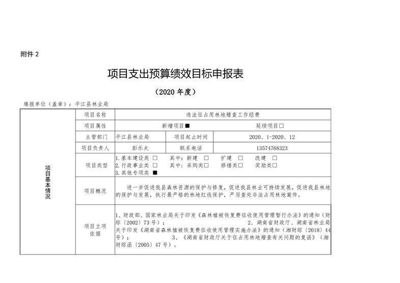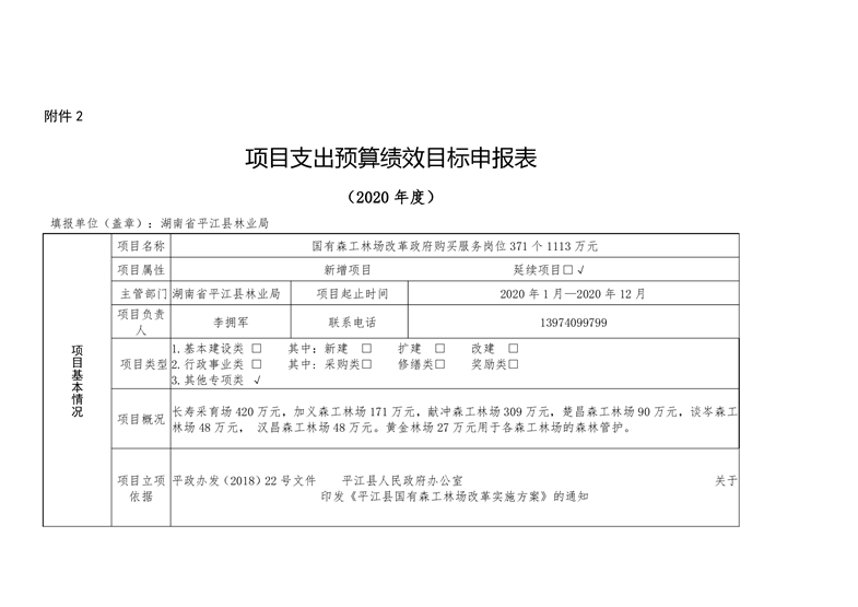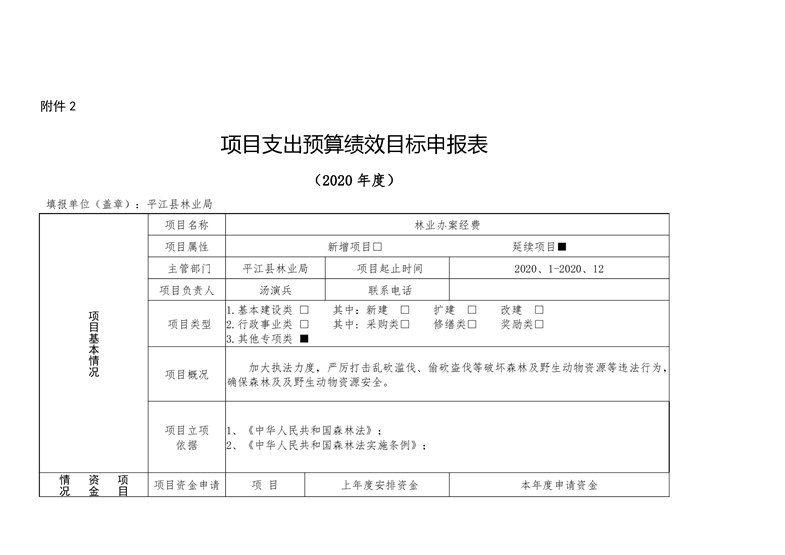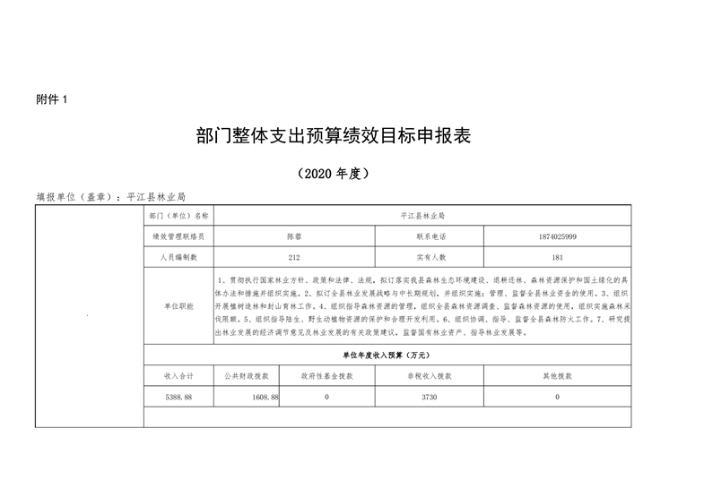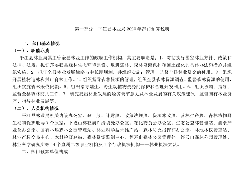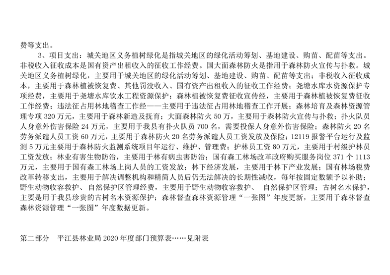 平江县林业局2020年部门预算编报说明