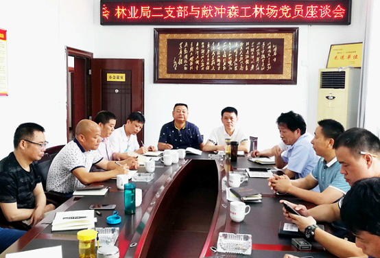 在与献冲森工林场党员座谈会上,总支书记方六权介绍了党员队伍建设情况,林场发展现状和面临的困境。他说,在市场经济冲击下,森工企业困难重重,负债累累,干部职工可以说是艰难度日,但全体党员团结一心,任劳任怨,克服困难,在开展生产的同时,认真开展“两学一做”和党员“双争”活动,加强了党性修养。