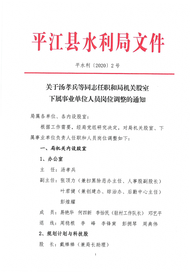 关于汤孝兵等同志任职和局机关股室下属事业单位人员岗位调整的通知
