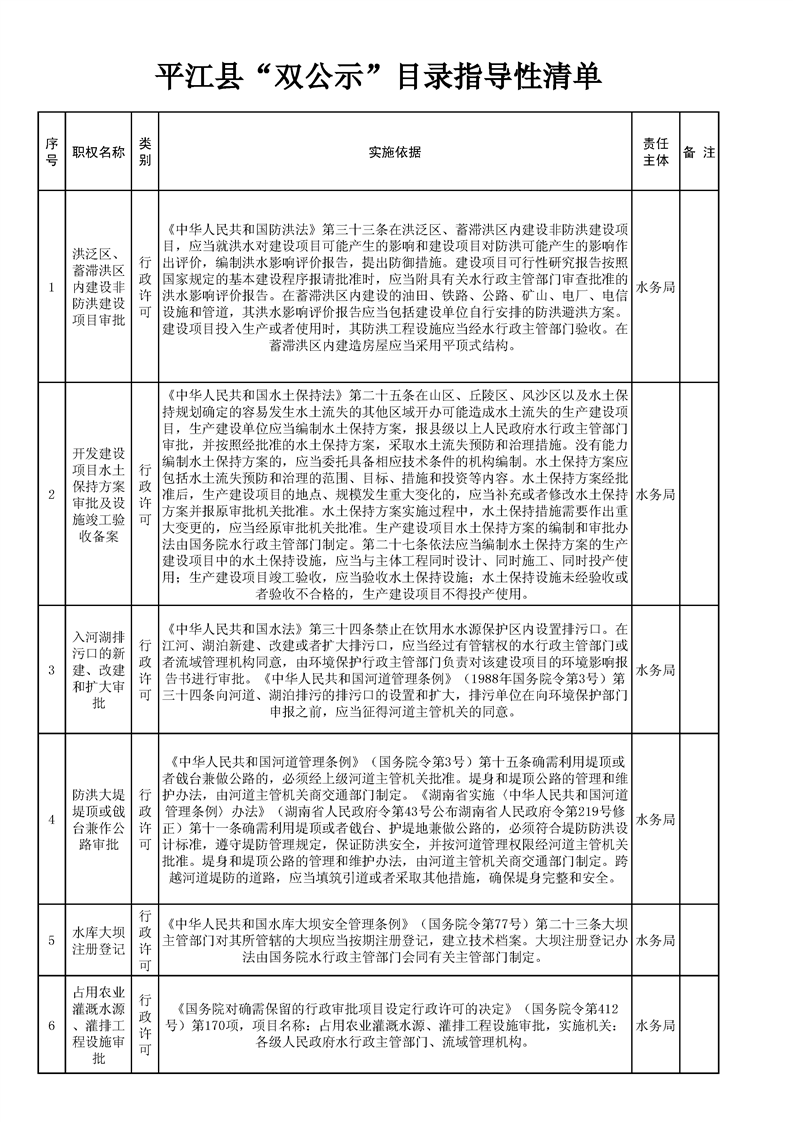 平江县“双公示”目录指导性清单