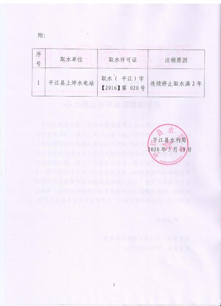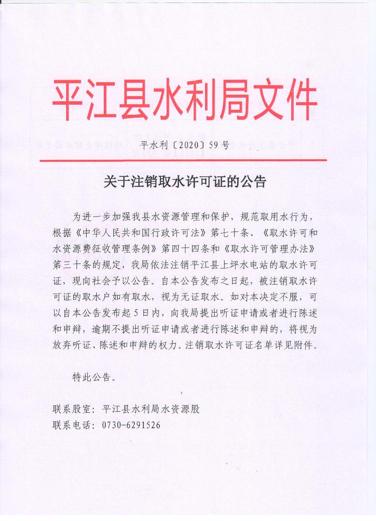 平江县水利局关于注销取水许可证的公告