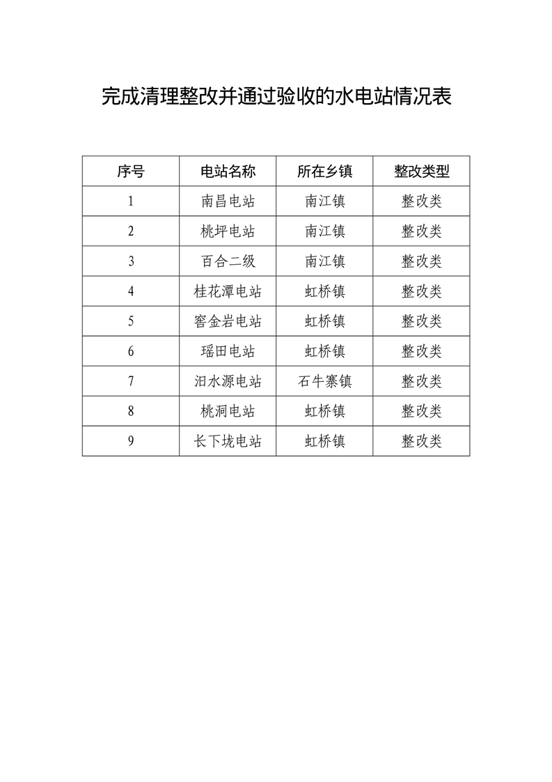 关于桃坪等 9 座水电站清理整改验收销号的 公示(第二批)