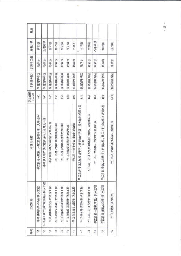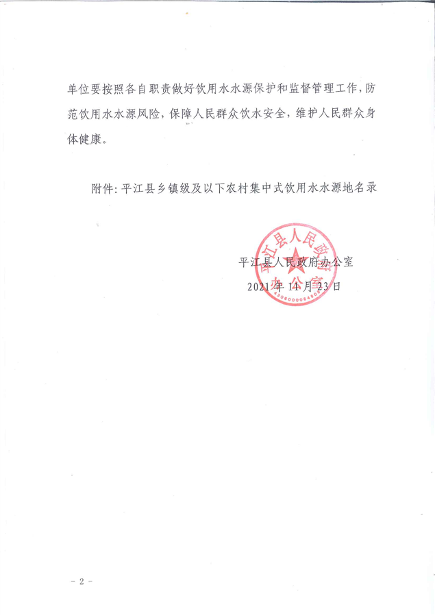 平江县乡镇级及以下农村集中式饮用水水源地名录的通知