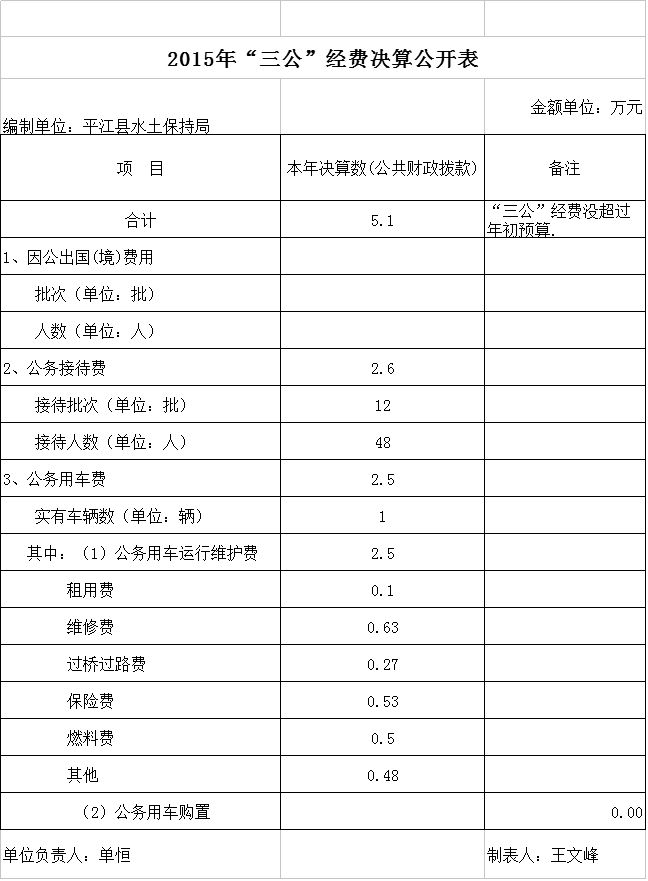 平江县水保局2015年三公经费决算公开表