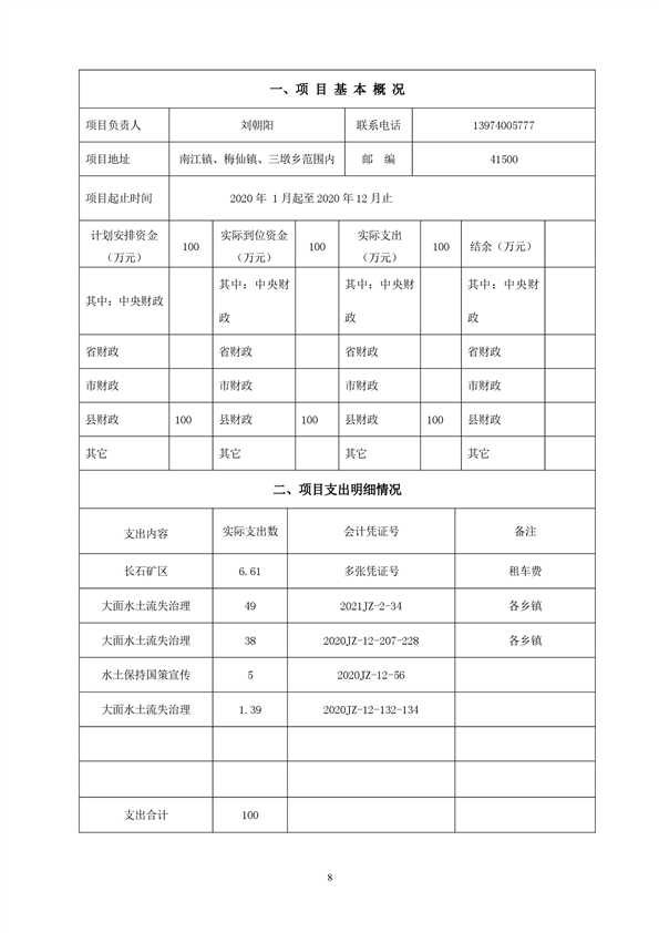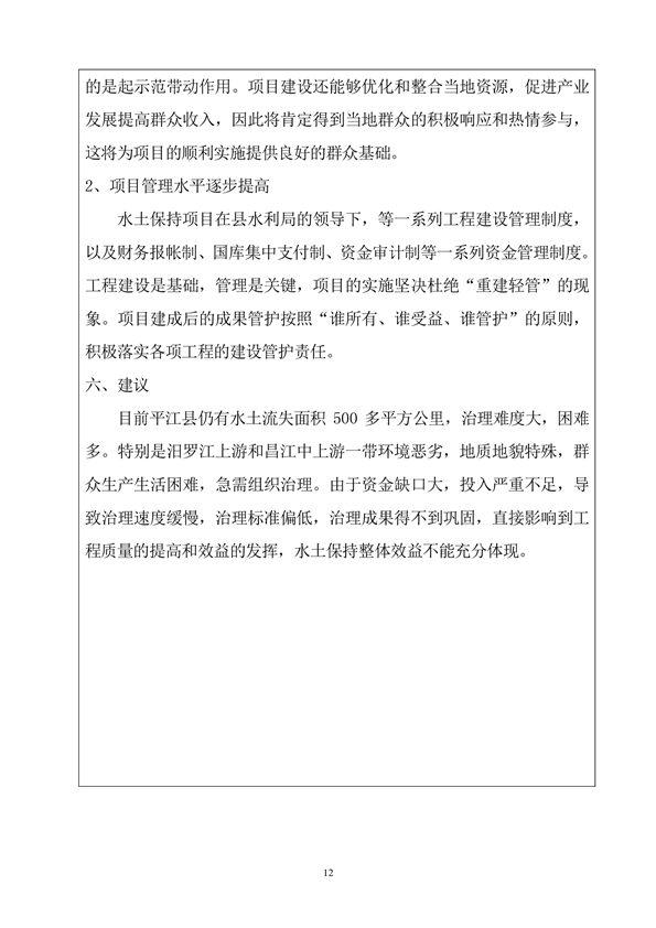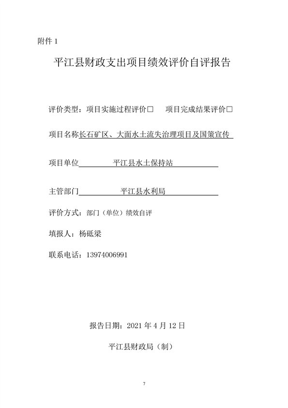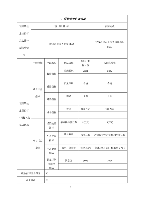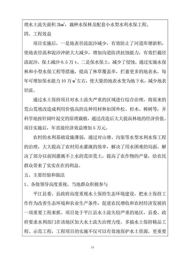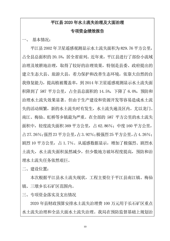 平江县水利局2020度水土流失治理绩效评价自评报告