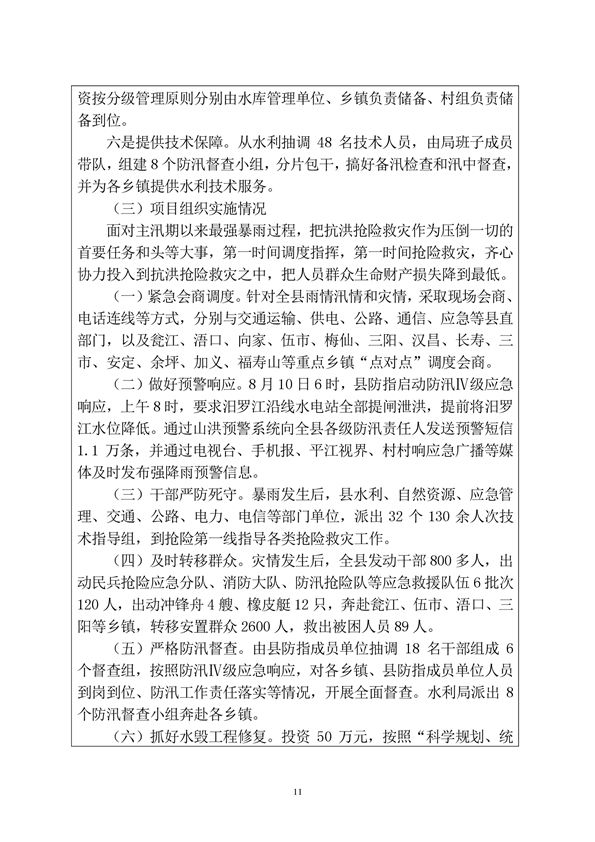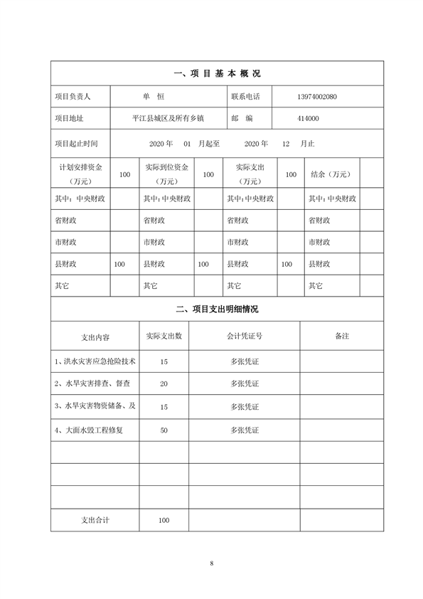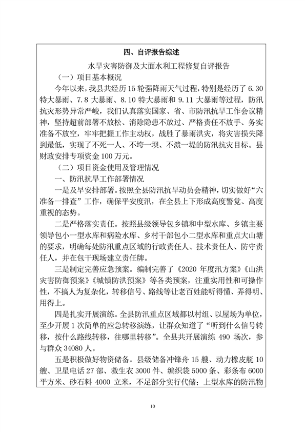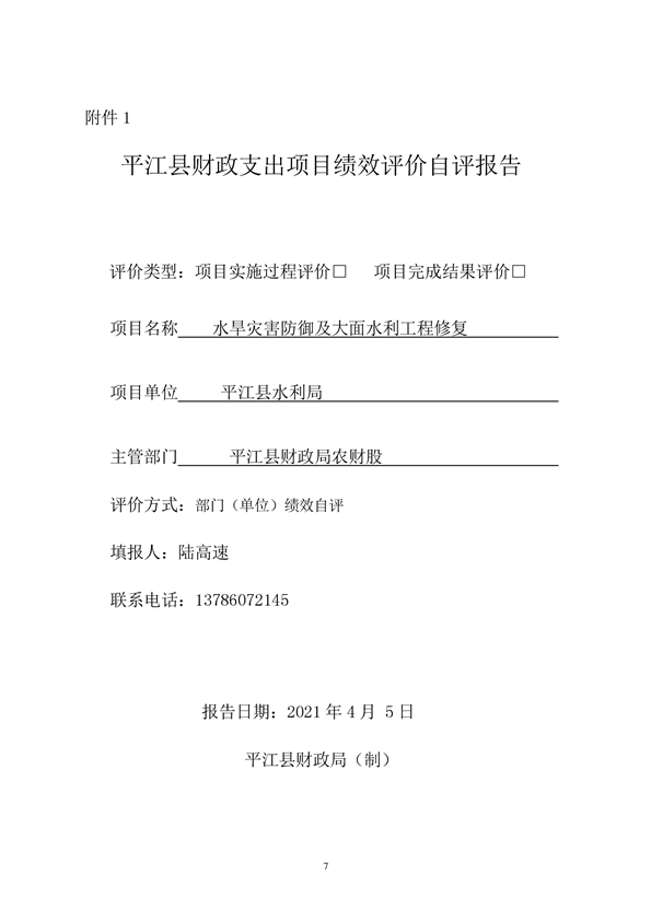 平江县水利局2020年度水旱灾害防治绩效评价自评报告