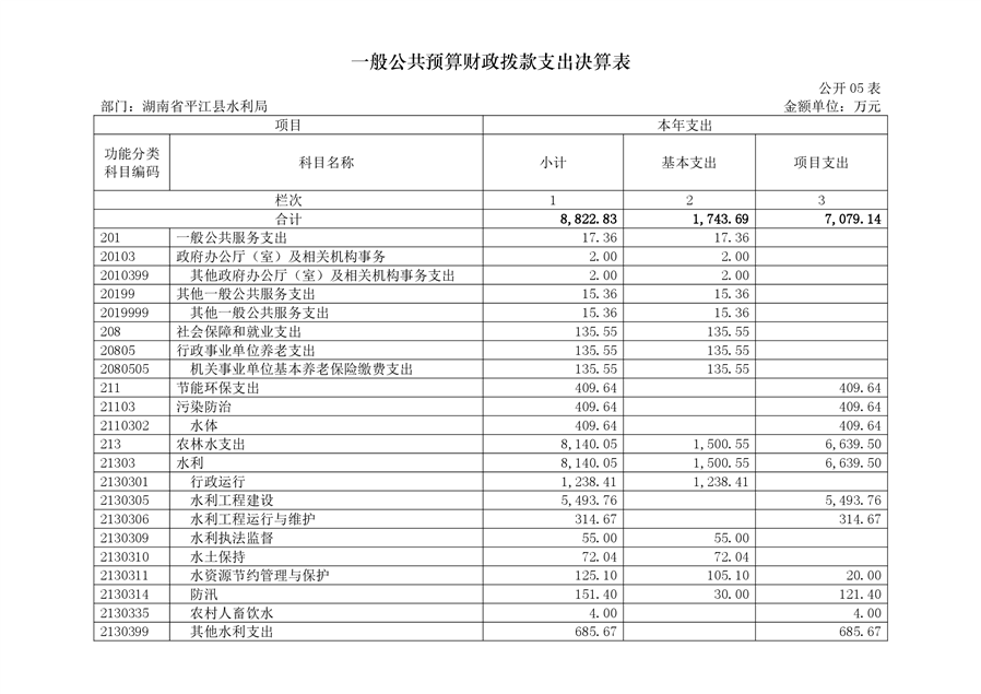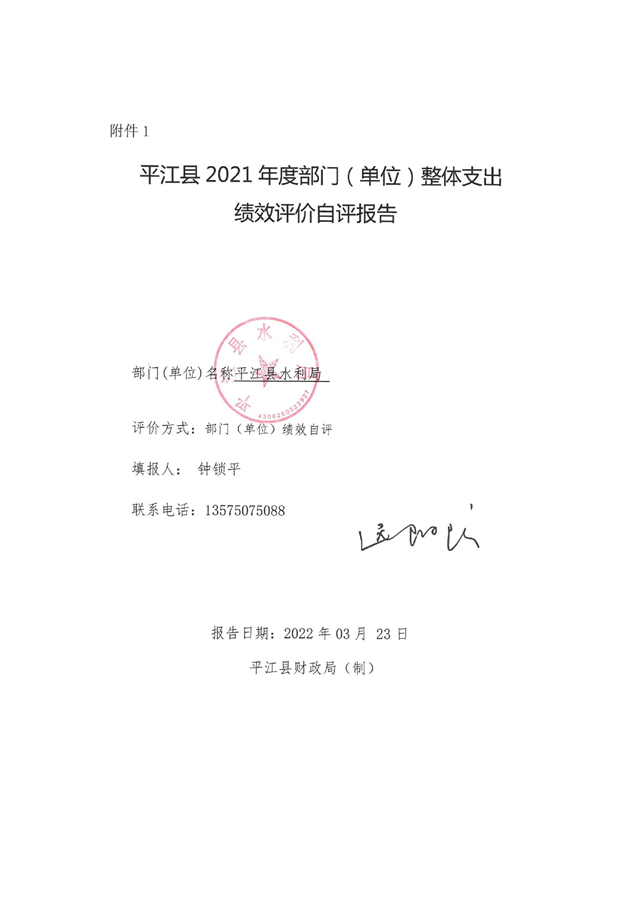 2021年度平江县水利局部门决算