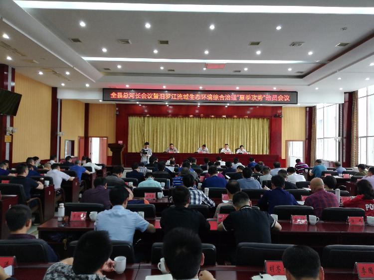 为学习贯彻习近平总书记关于生态文明建设和长江经济带发展重要战略思想,全面落实省市河长制会议、污染防治攻坚战暨“2018年夏季攻势”会议精神,5月11日,全县总河长会议暨汨罗江流域生态环境综合治理“夏季攻势”动员会召开。县委副书记、县长、县级总河长黄伟雄出席并作重要讲话,会议由县委副书记肖湘晖主持,县领导胡伟、欧阳晓耀、陈淼、熊江新、童驾辉、徐教凡、姜伟南、 魏移宗、田浩、谢淼泉以及各乡镇乡镇长、河长办主任、县城乡环境综合整治办、河长办、县水务局河长站全体工作人员参加。