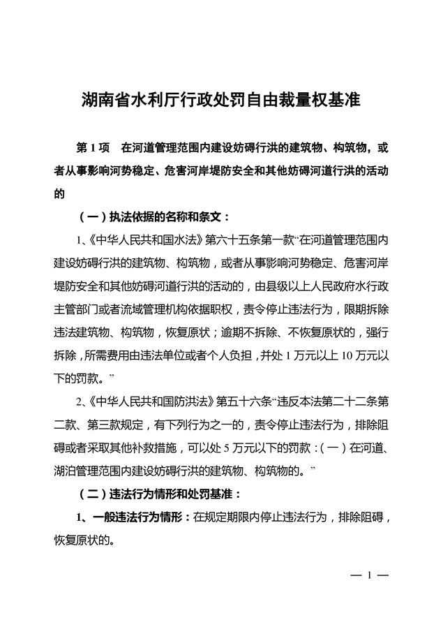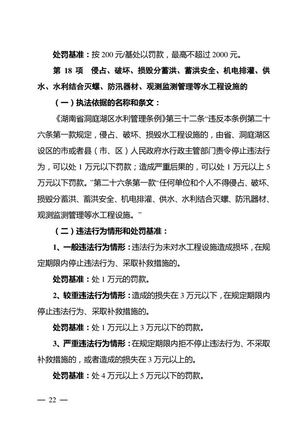 2022年湖南省水利厅行政处罚自由裁量权基准