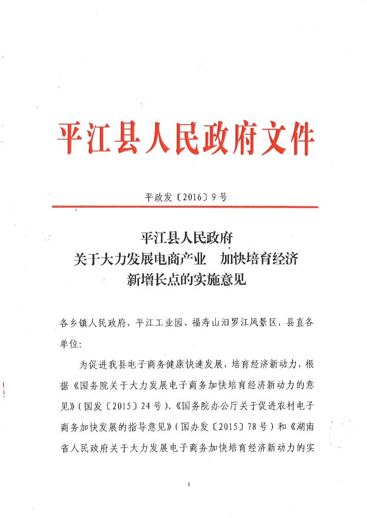 平江县人民政府关于大力发展电商产业加快培育经济新增长点的实施意见