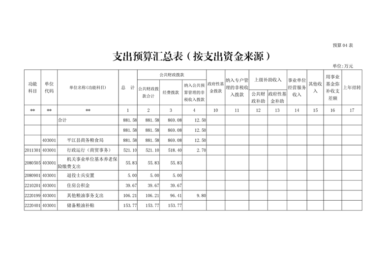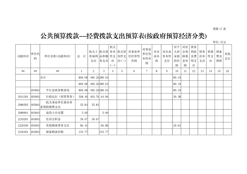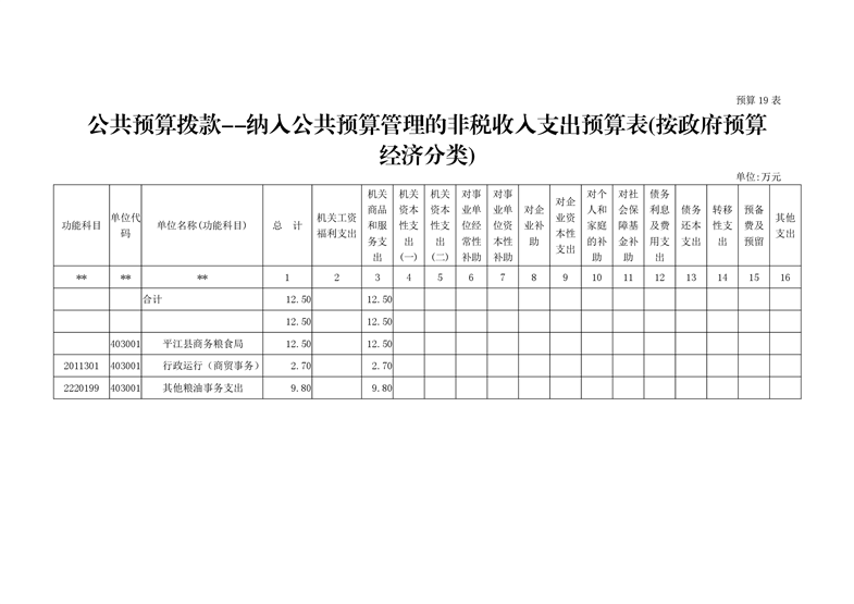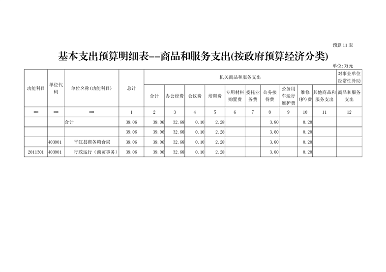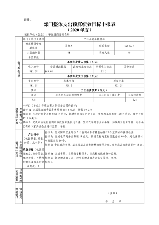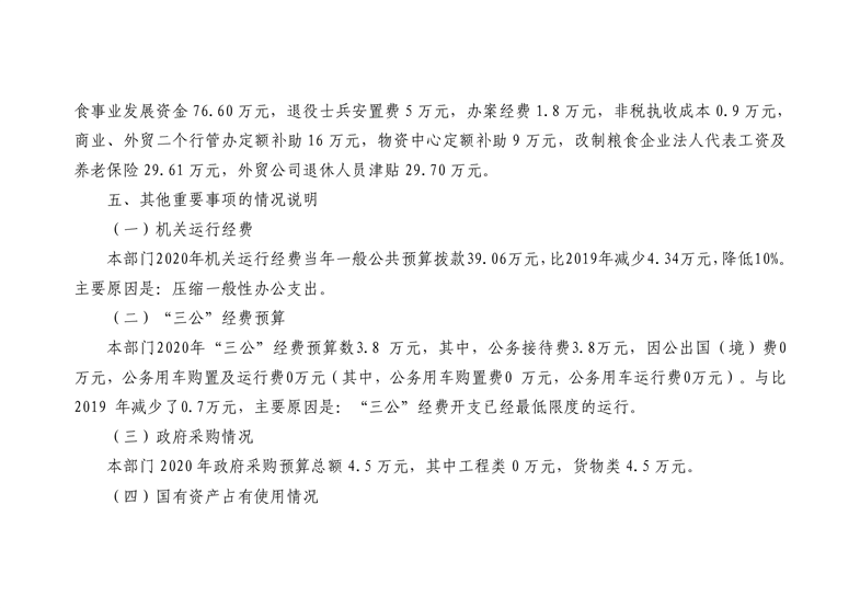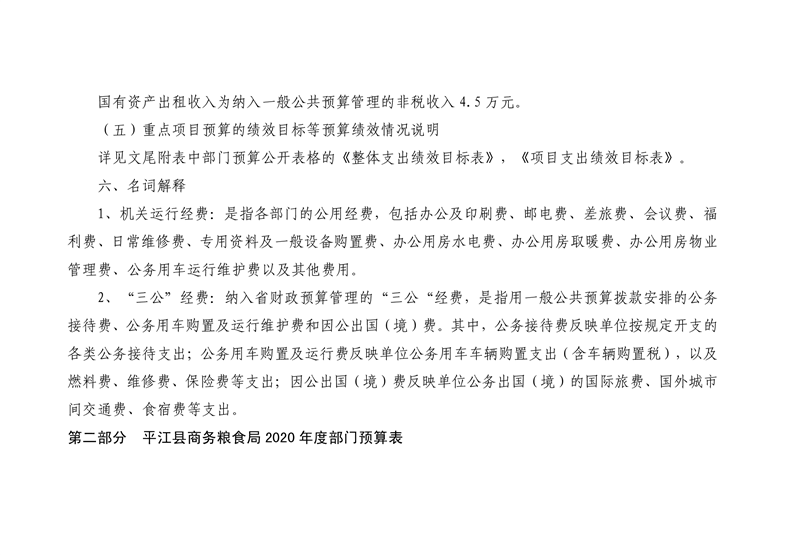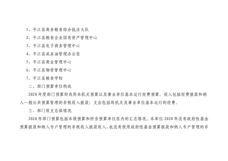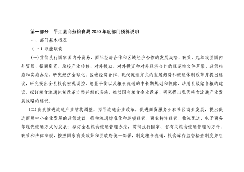 平江县商务粮食局2020年度部门预算编报说明