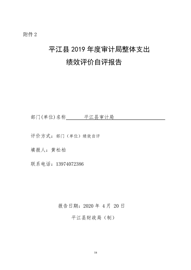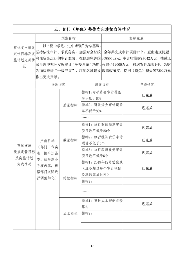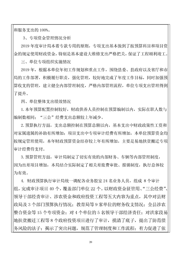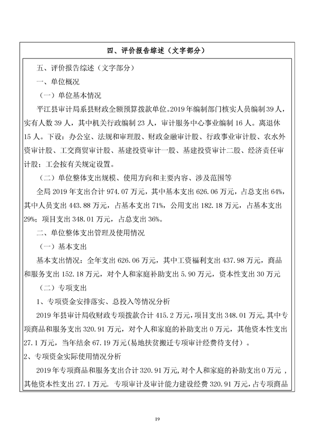 平江县2019年度审计局整体支出绩效自评