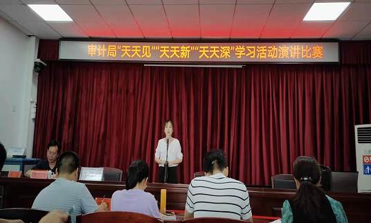 比赛由该局机关工会组织,以习近平新时代中国特色社会主义思想“天天见”“天天新”“天天深”学习活动为主题,要求结合审计岗位和工作实际,热情歌颂在学习贯彻习近平新时代中国特色社会主义思想中,身边涌现出来的先进典型和先进事迹。比赛中,9名参赛选手紧紧围绕演讲主题,从自身岗位职责和实际工作情况出发,以生动的事例、富有感染力的语言,时而娓娓道来,时而慷慨激昂,张弛有度,声情并茂,充分展现了平江审计人的风采,博得了观众和评委的阵阵掌声。经过一个半小时的角逐,投资审计二股的陈斯灵夺得一等奖,办公室的方韵、投资审计一股的李赞获得二等奖,魏威、杨红霞、陈丹曦获得三等奖。