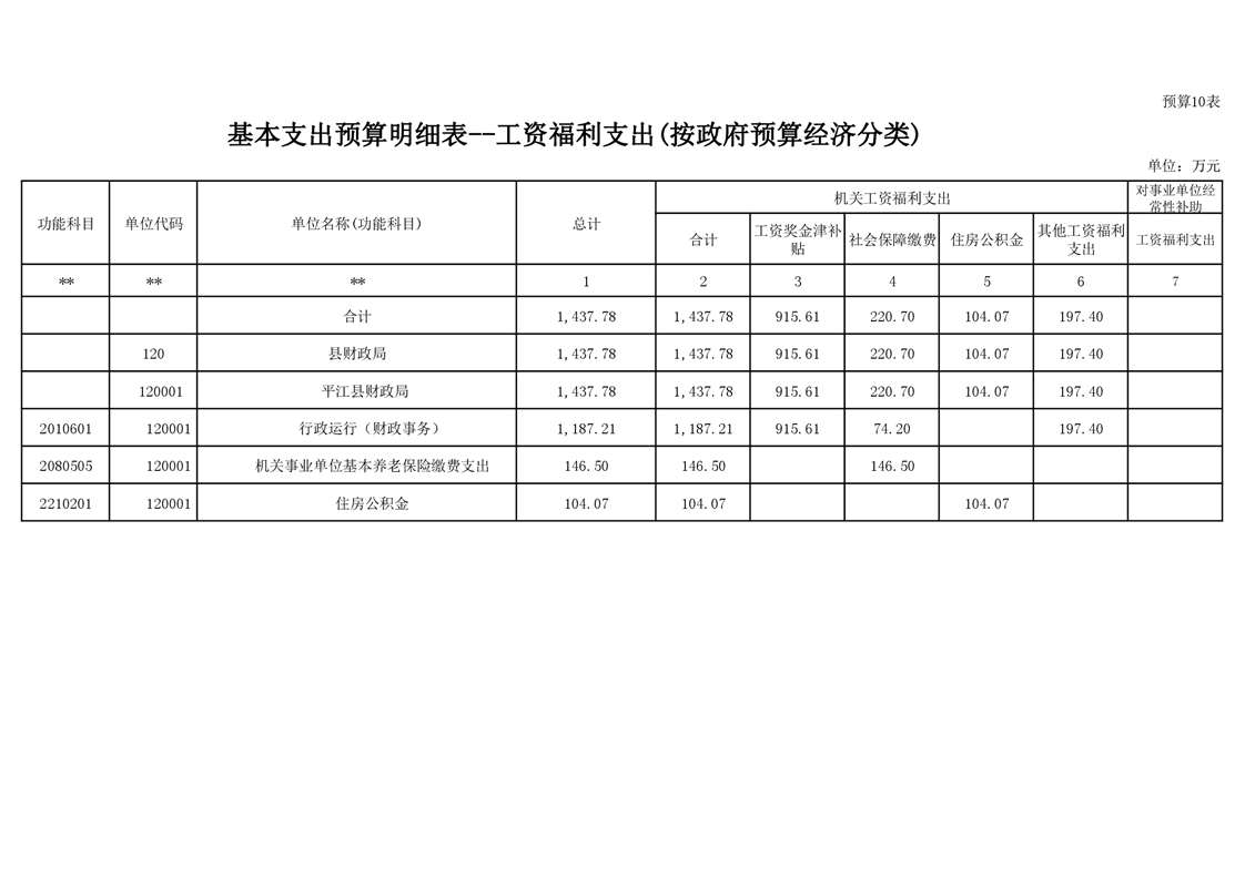 平江县财政局2021年预算公开