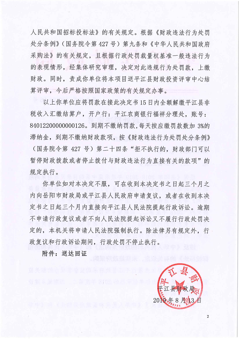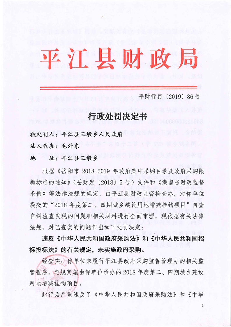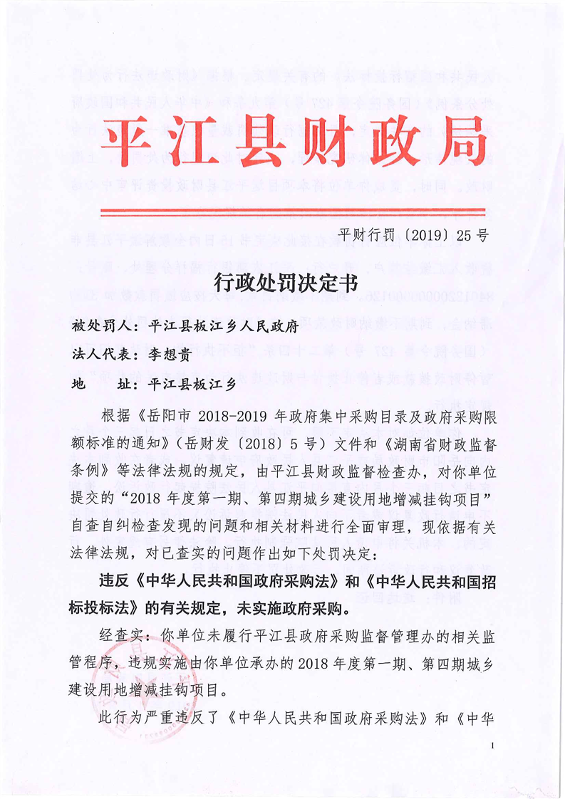 平江县财政违法行为行政处罚公示