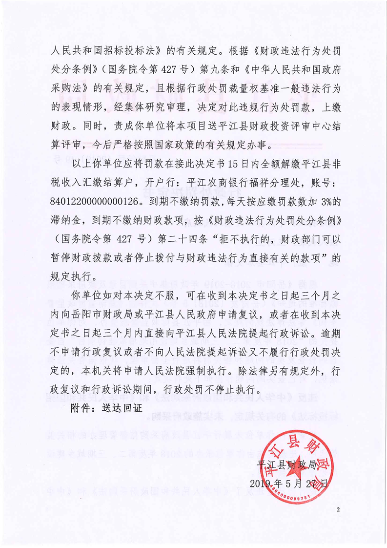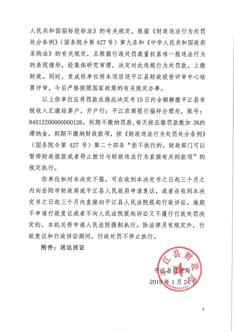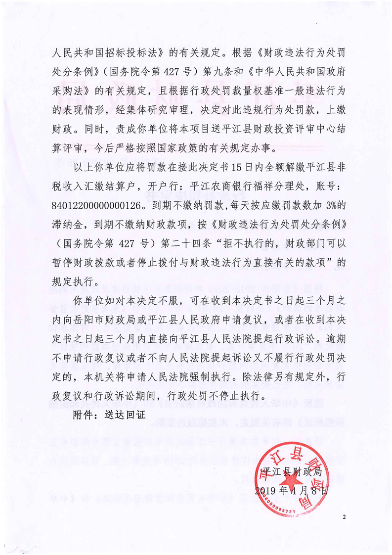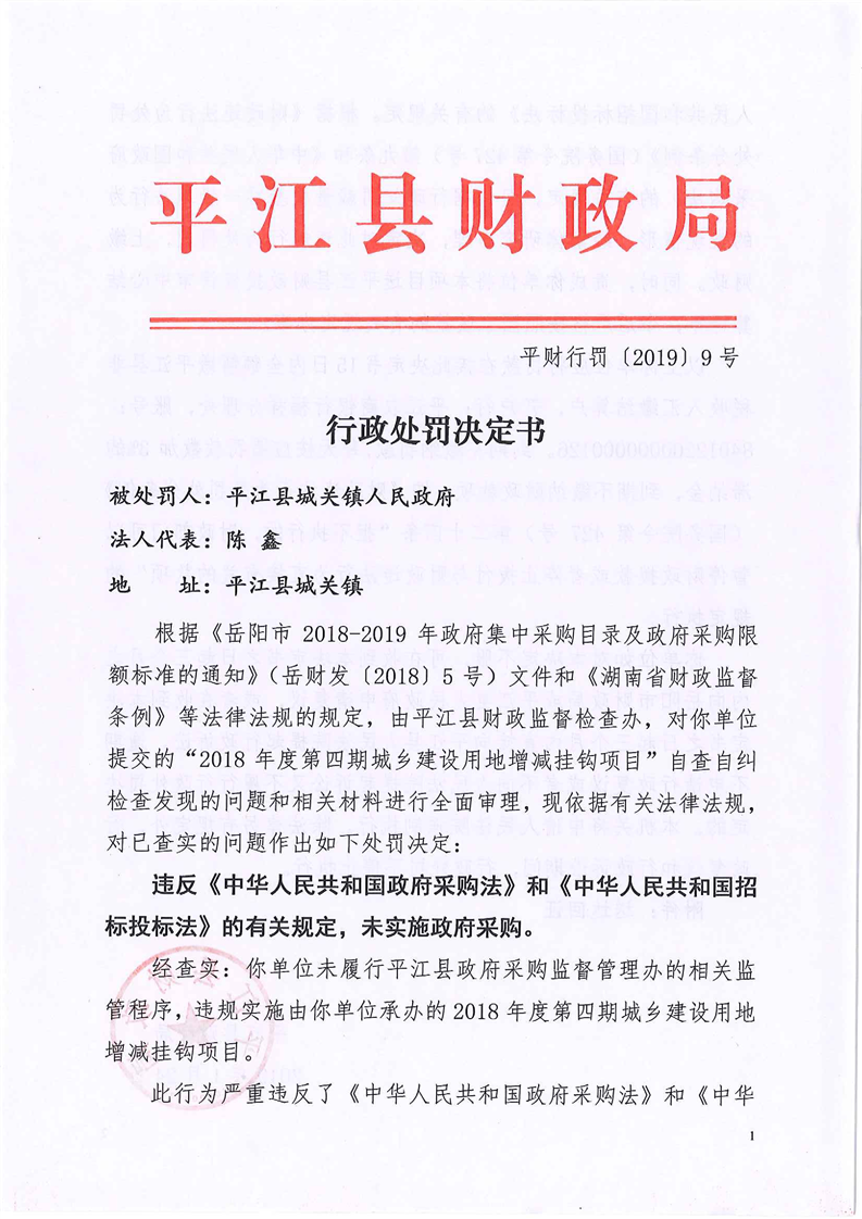 平江县财政违法行为行政处罚公示