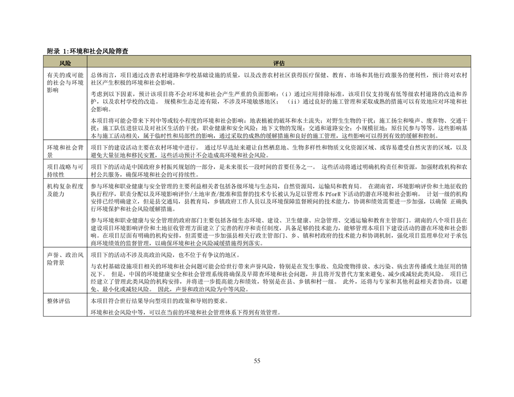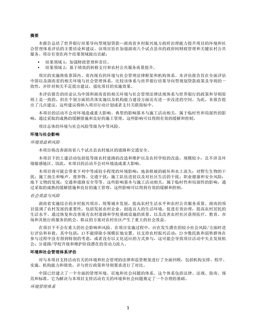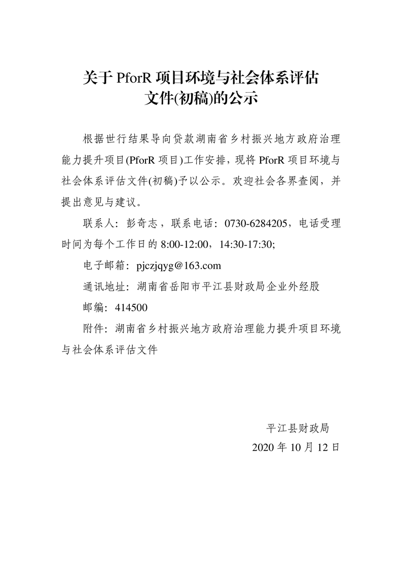 关于PforR项目环境与社会体系评估 文件(初稿)的公示