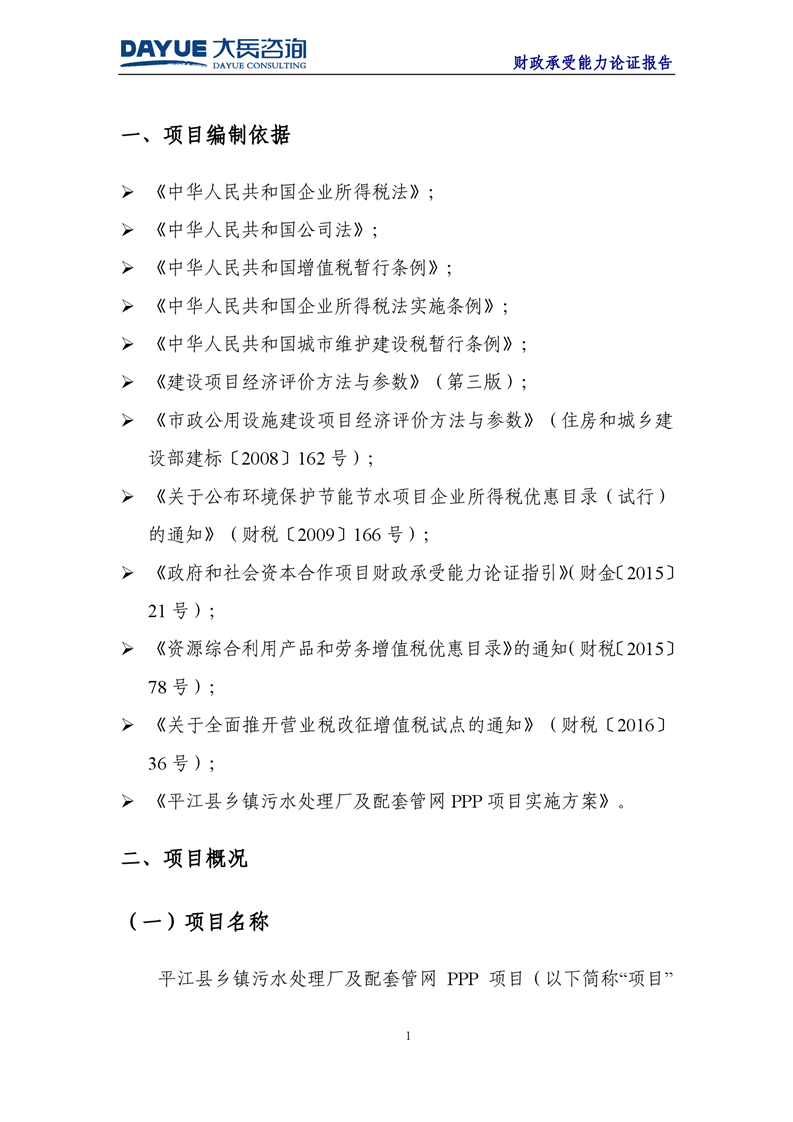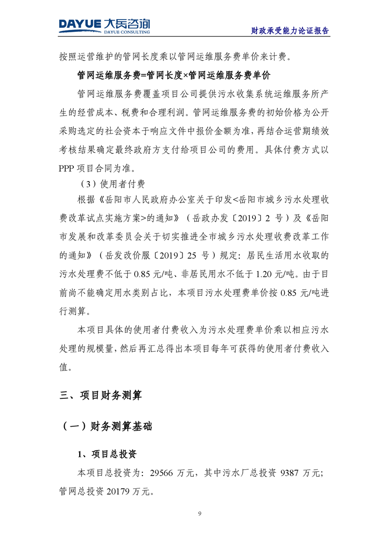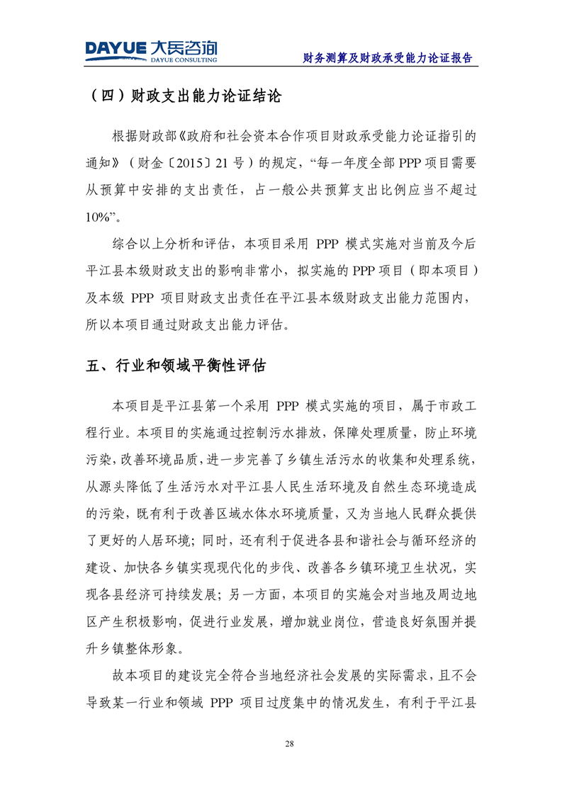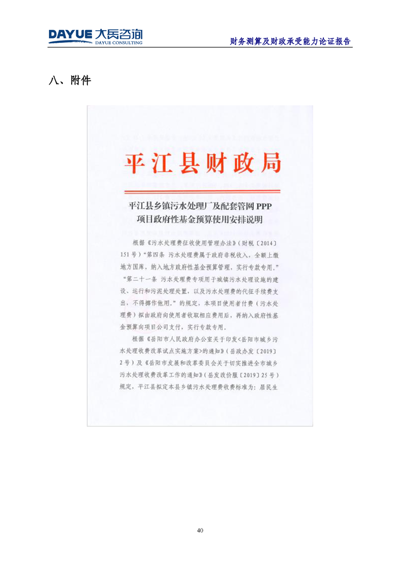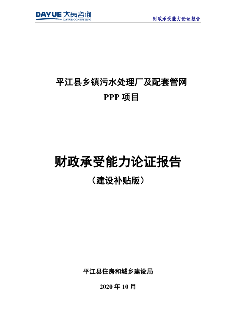 平江县乡镇污水处理厂及配套管网PPP项目财政承受能力论证