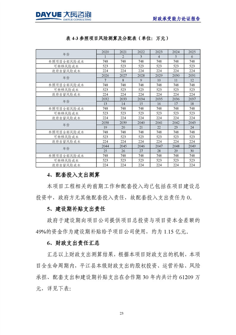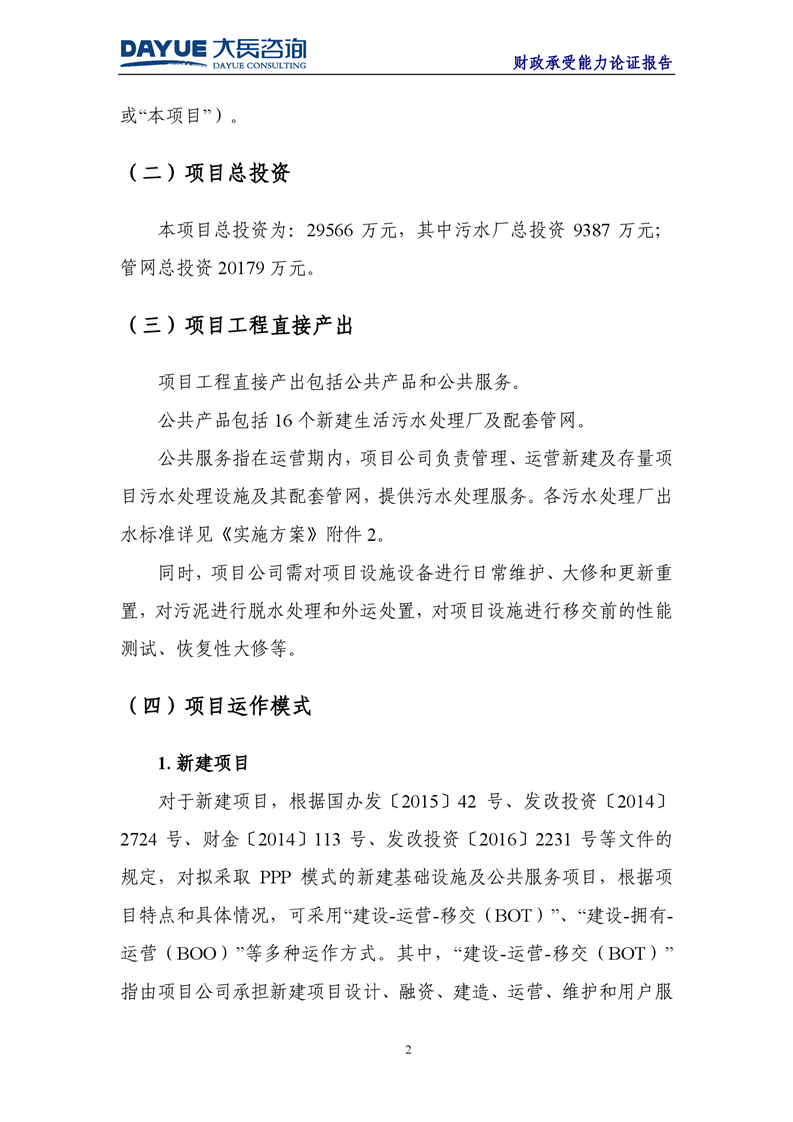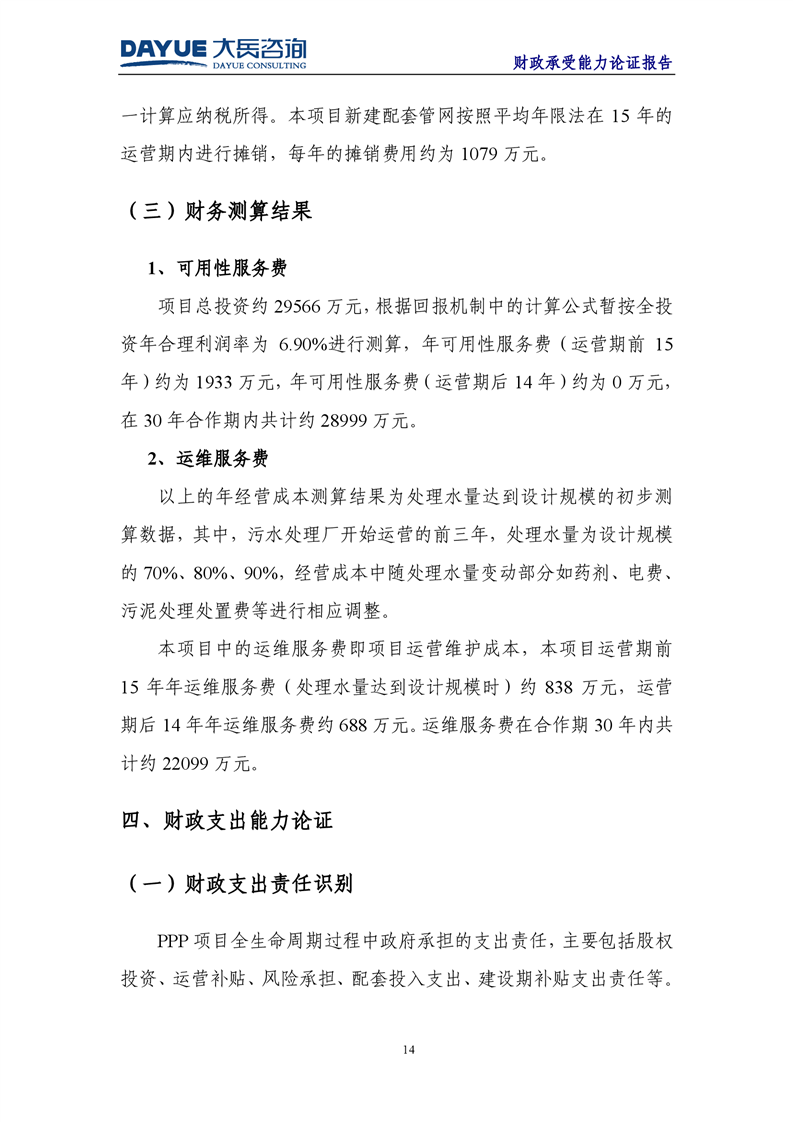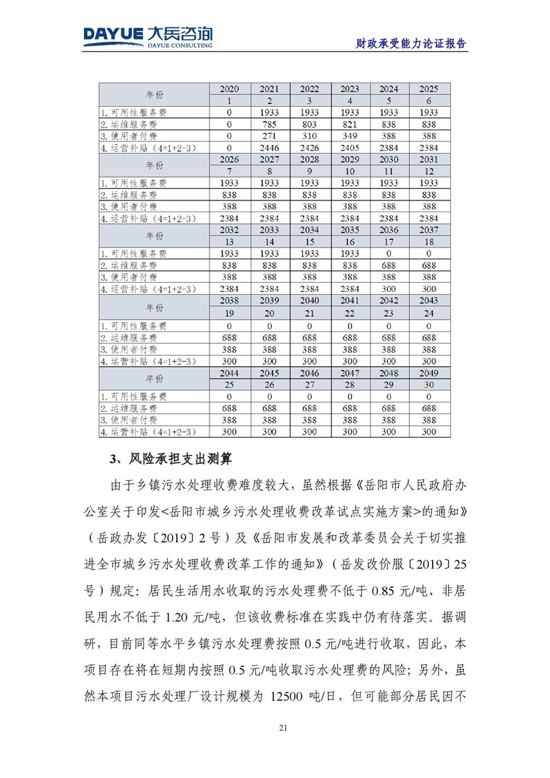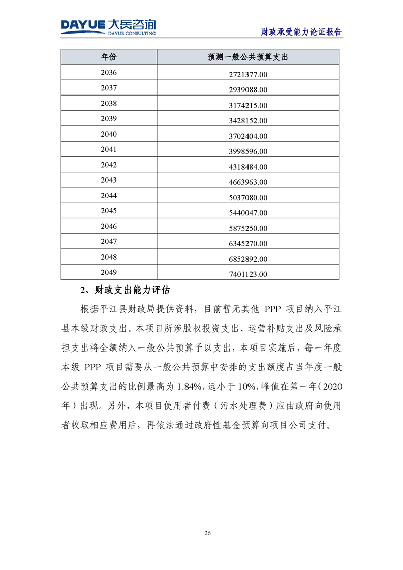 平江县乡镇污水处理厂及配套管网PPP项目财政承受能力论证