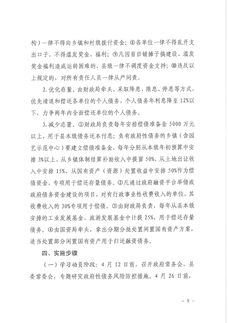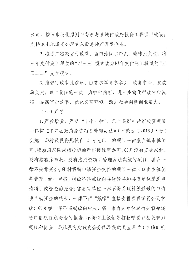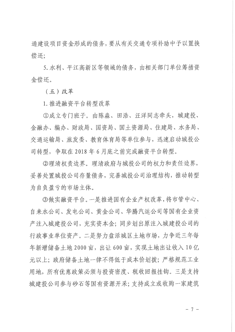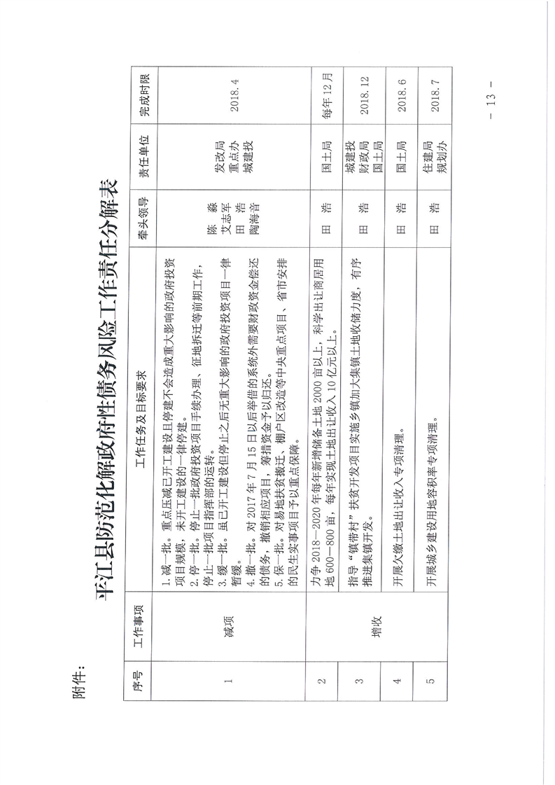 关于印发《平江县防范化解政府性债务风险工作方案》的通知