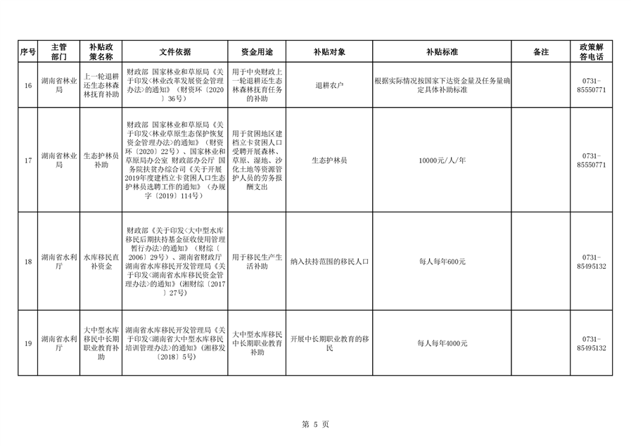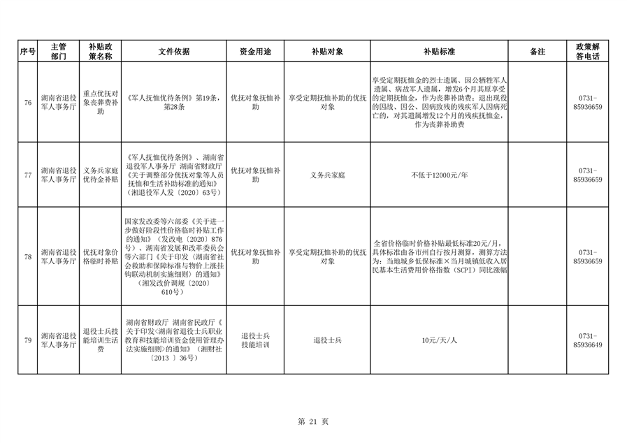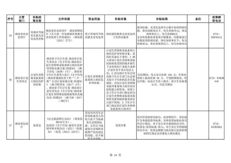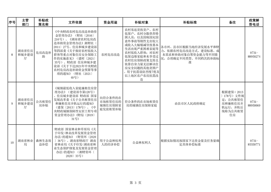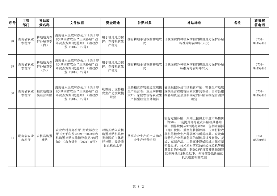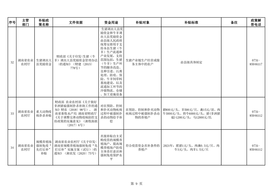 平江县财政局关于公布2021年惠民惠农财政补贴政策清单的通知