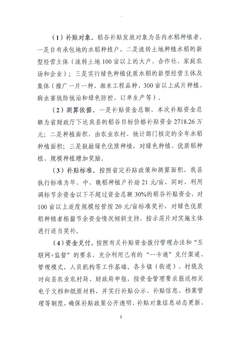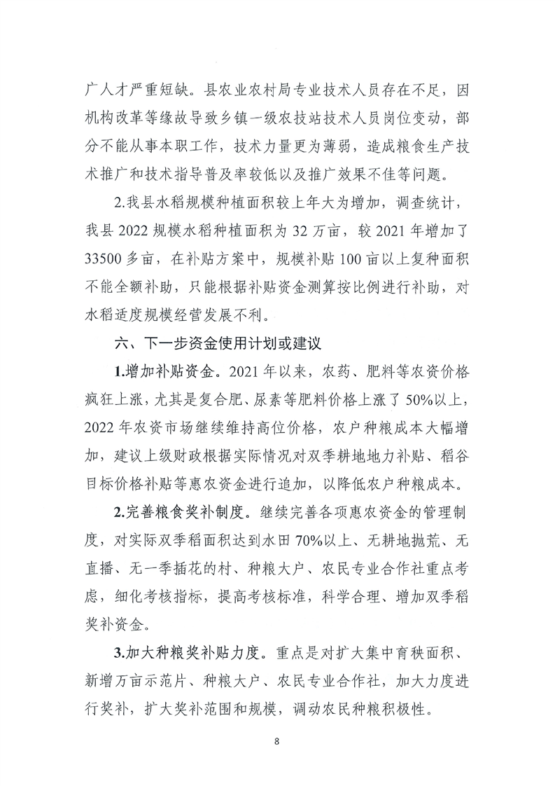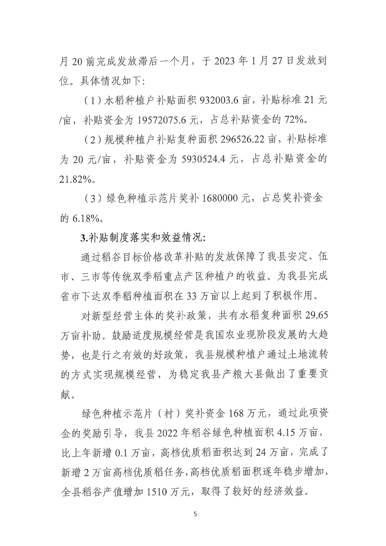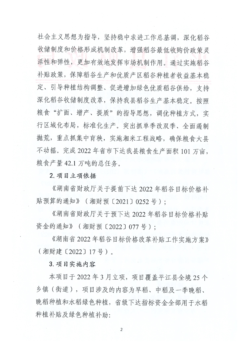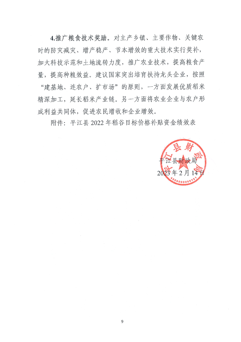 平江县财政局关于平江县2022年稻谷目标价格补贴资金绩效自评报告