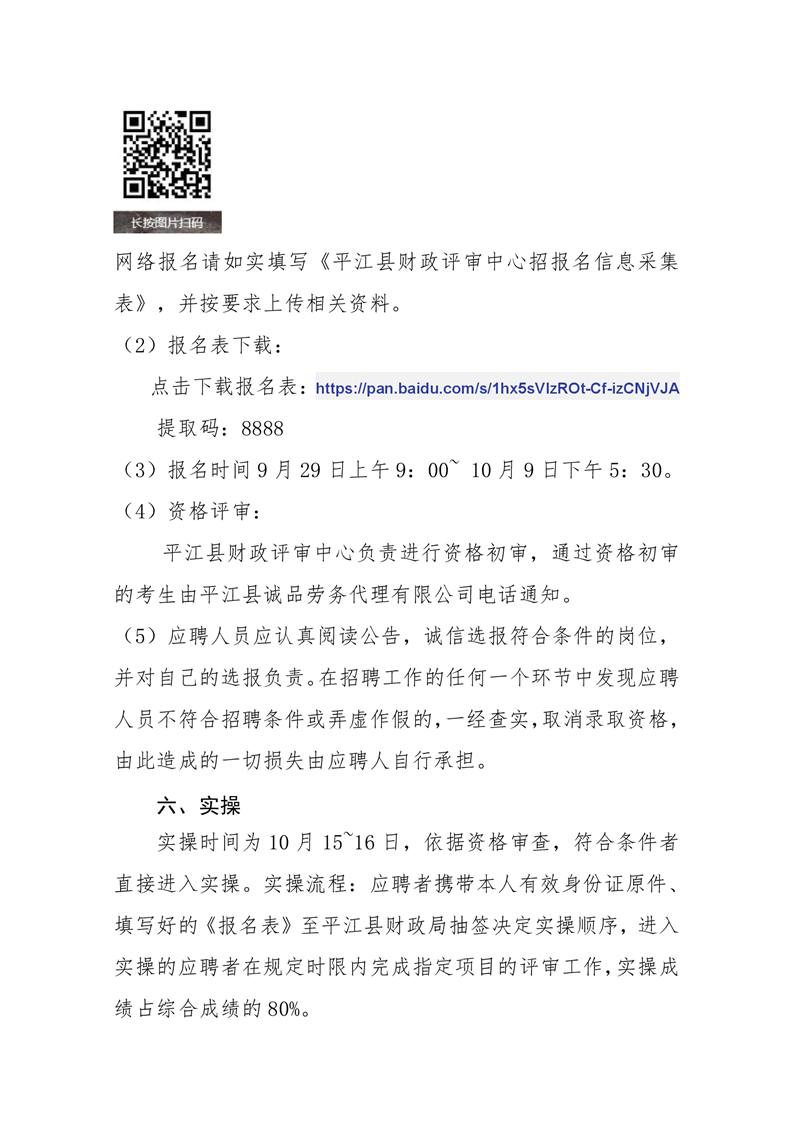 平江县财政评审中心招聘评审工作人员公告(第五批)