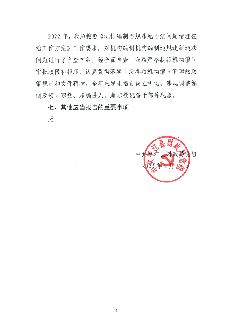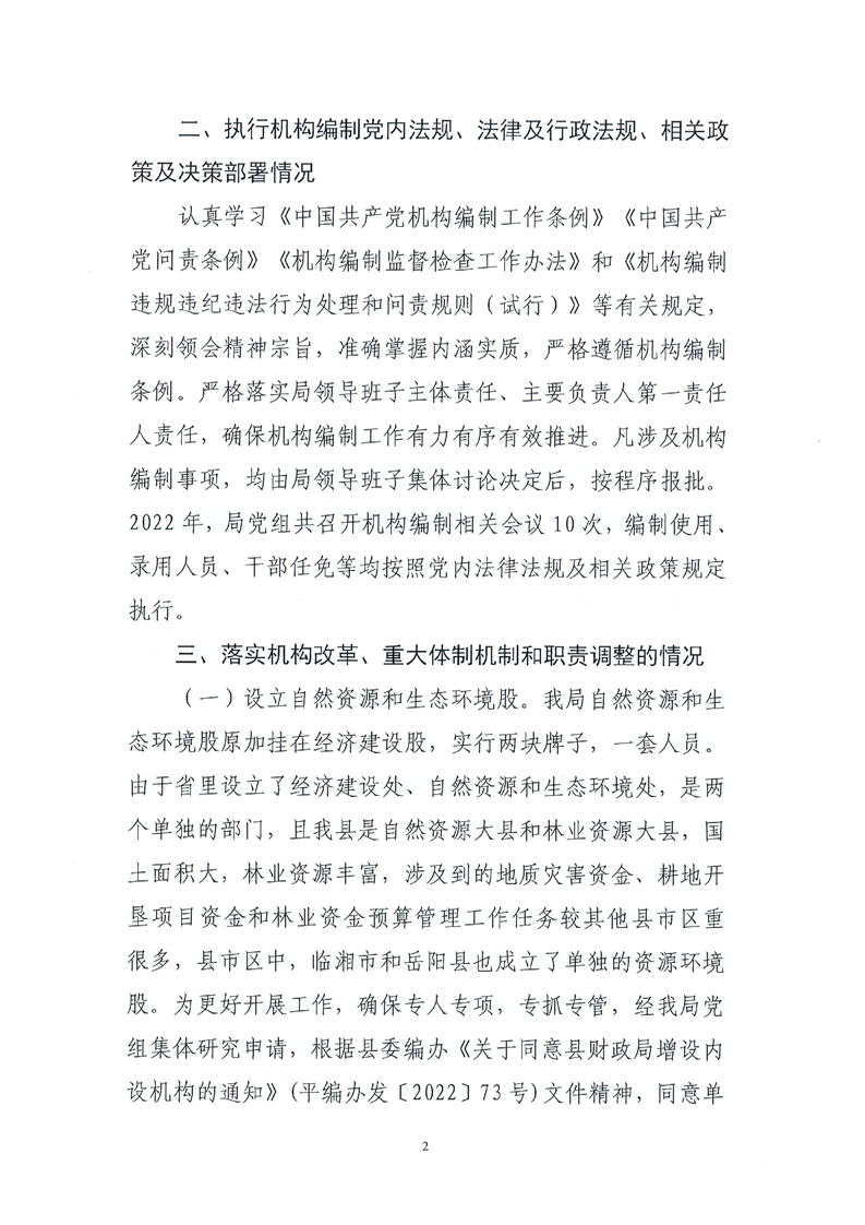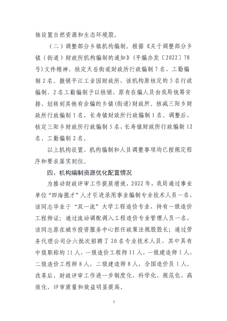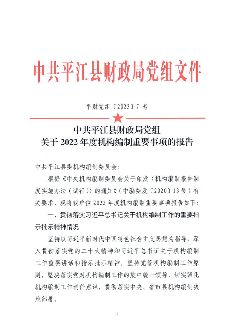 关于2022年度机构编制重要事项的报告(平财党组[2023]7号)