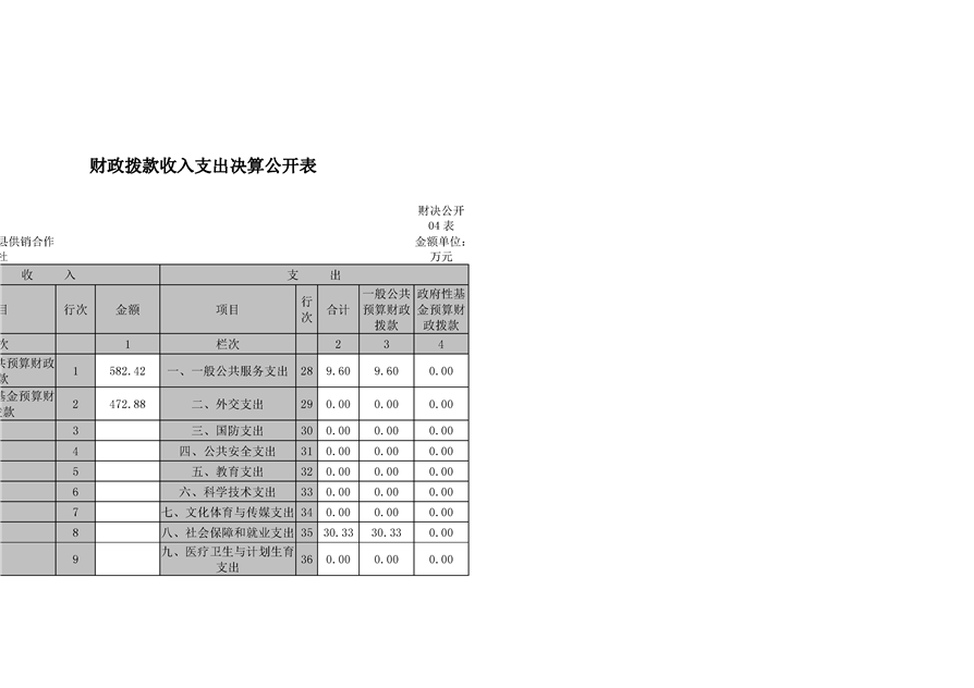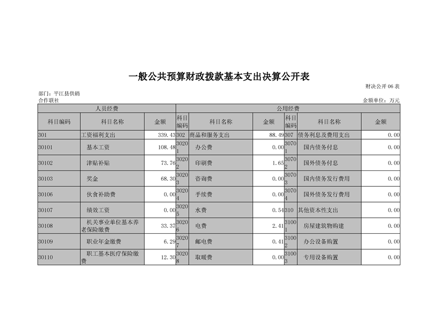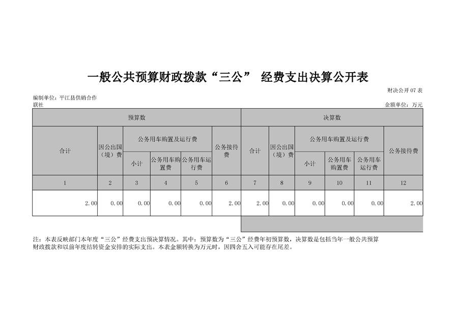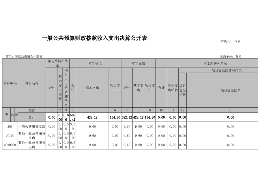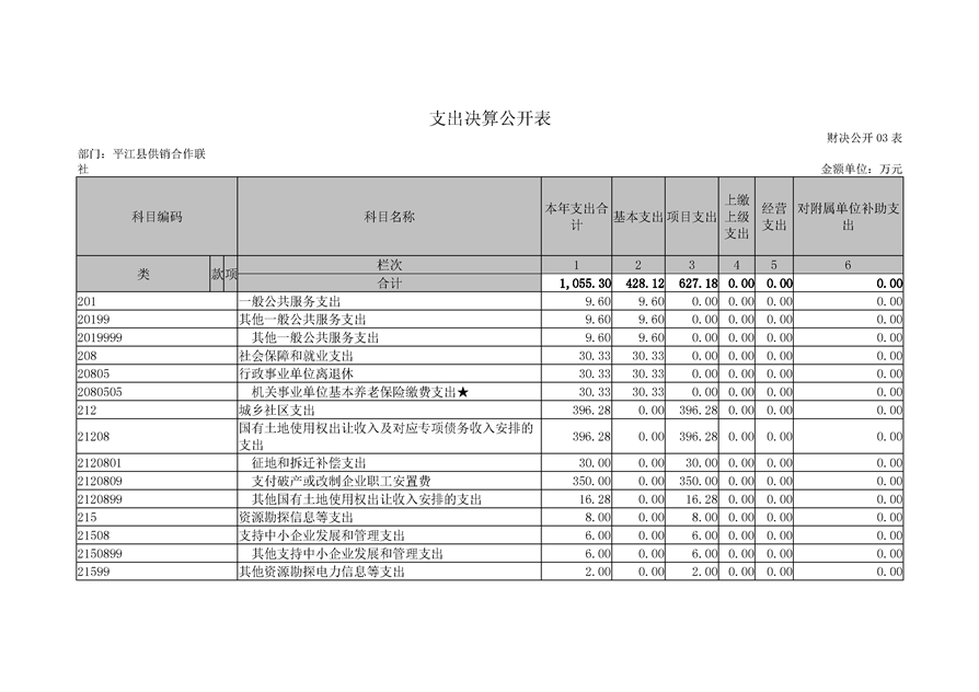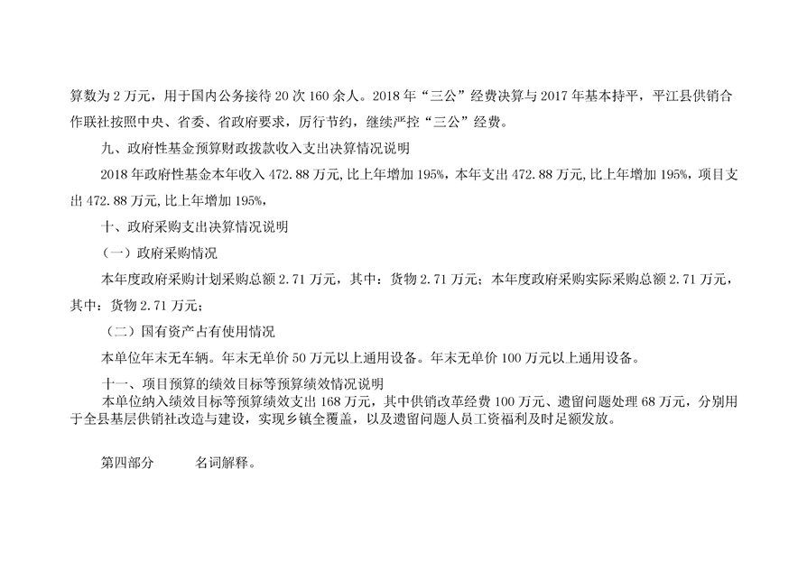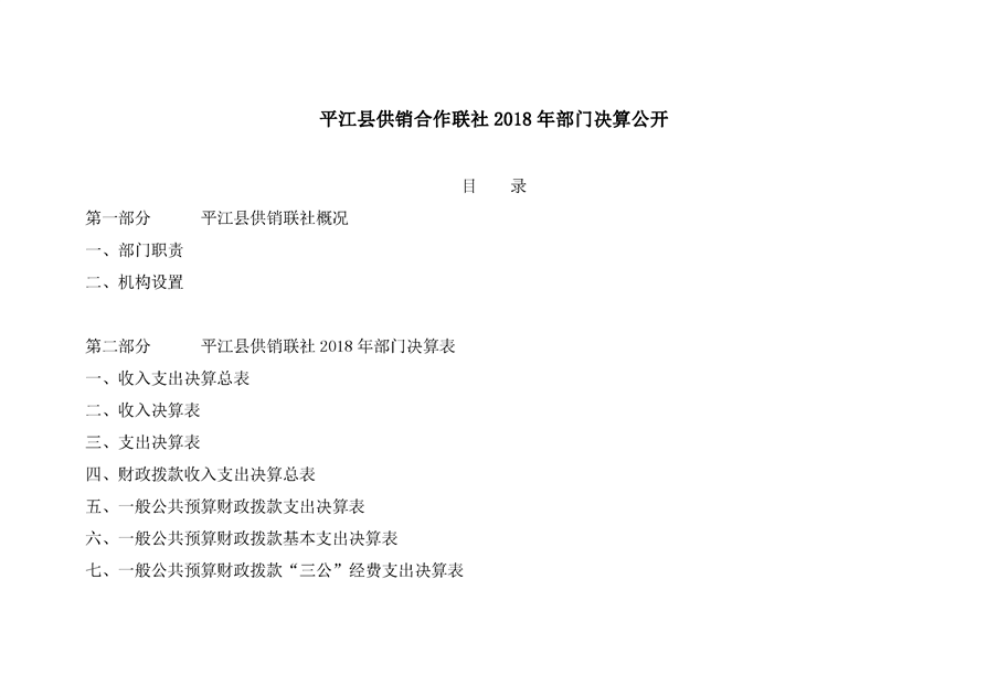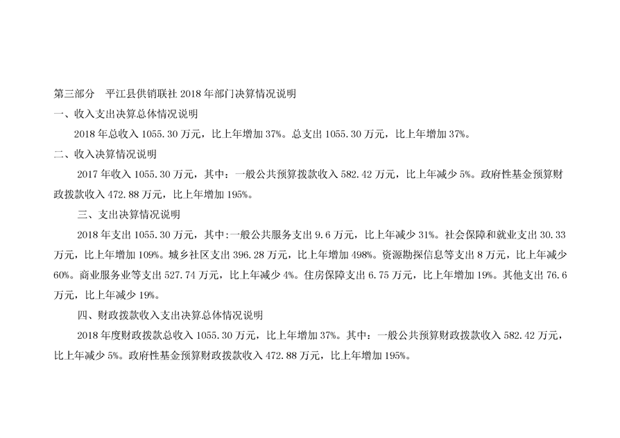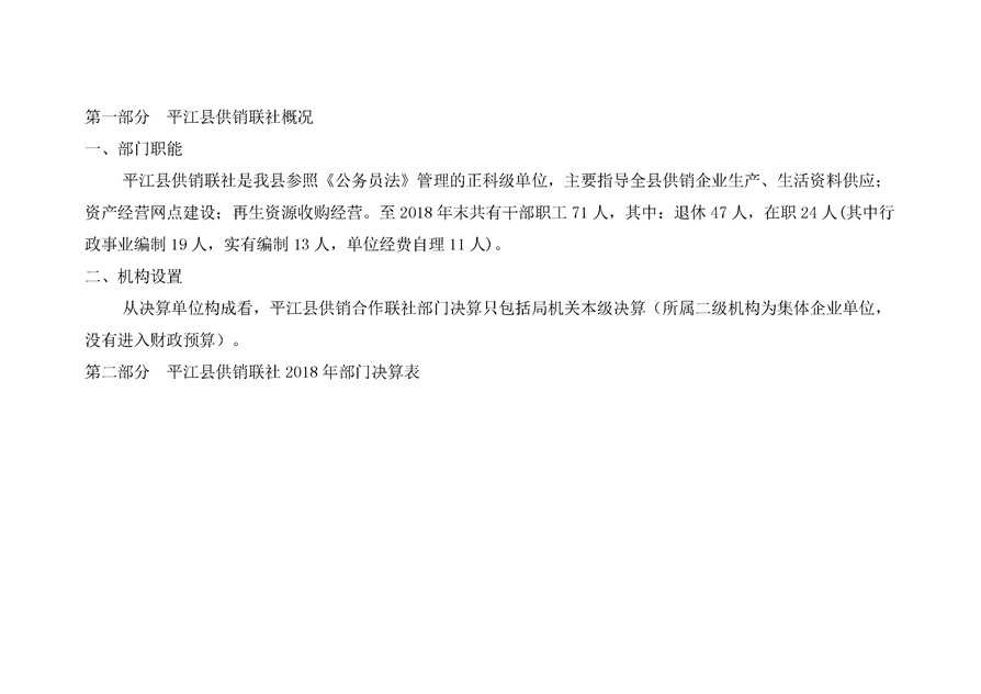 平江县供销社合作联社2018年部门决算公示