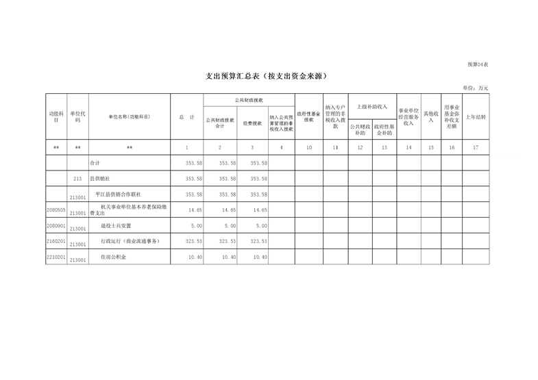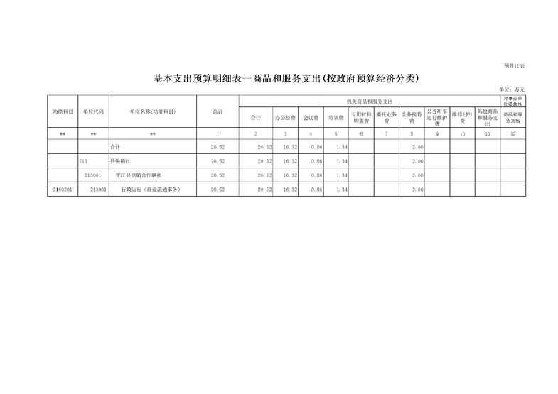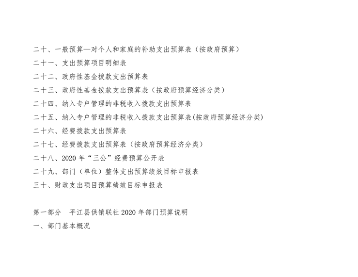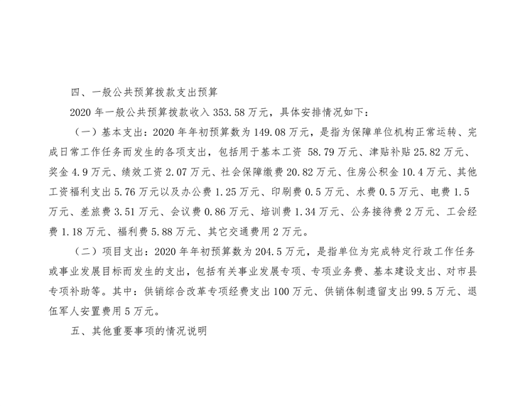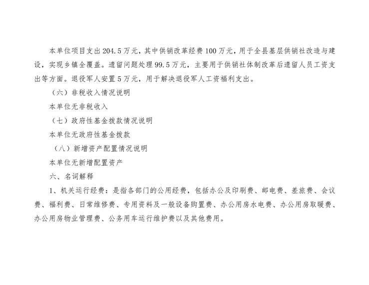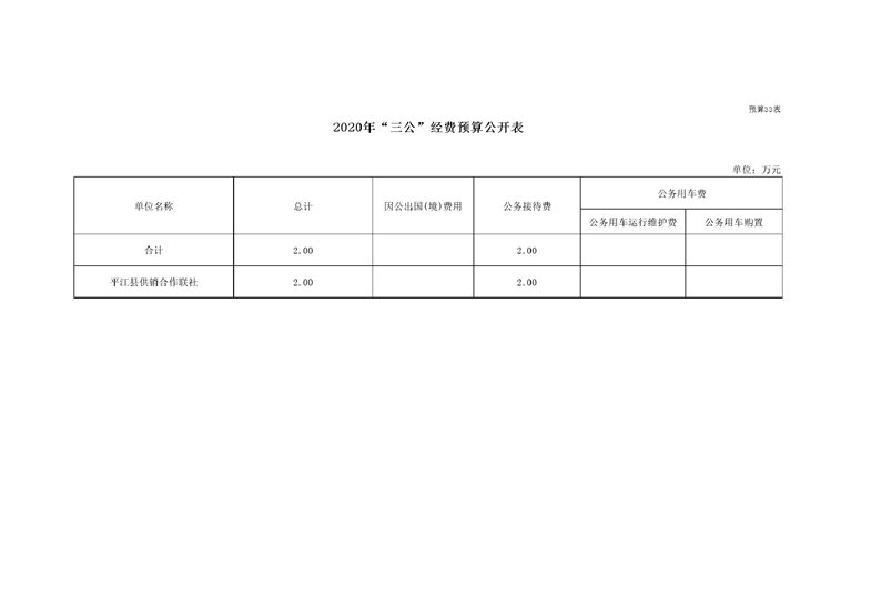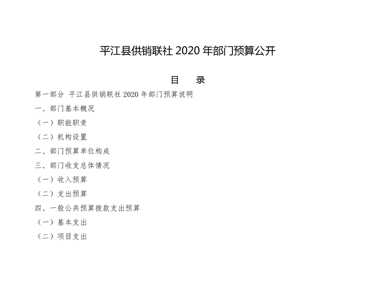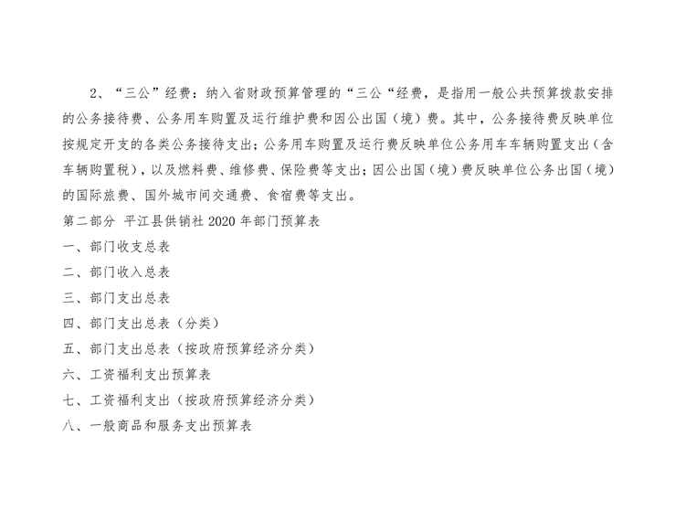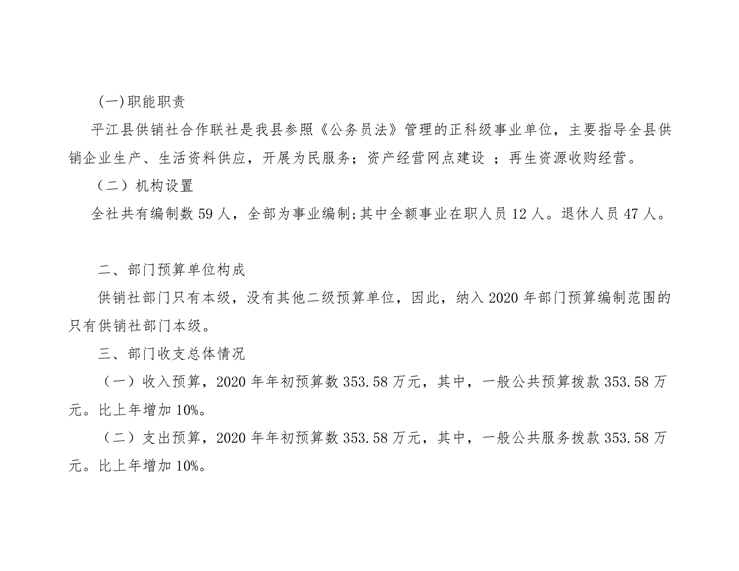 平江县供销社合作联社2020年部门预算编报说明(补充)