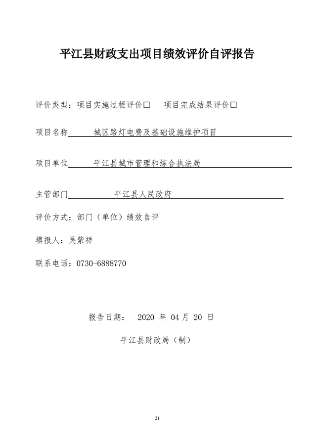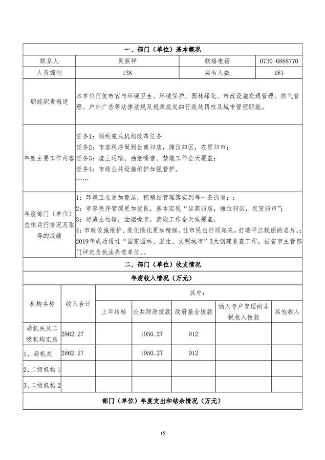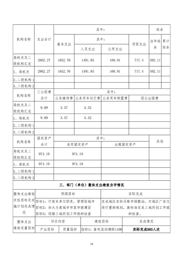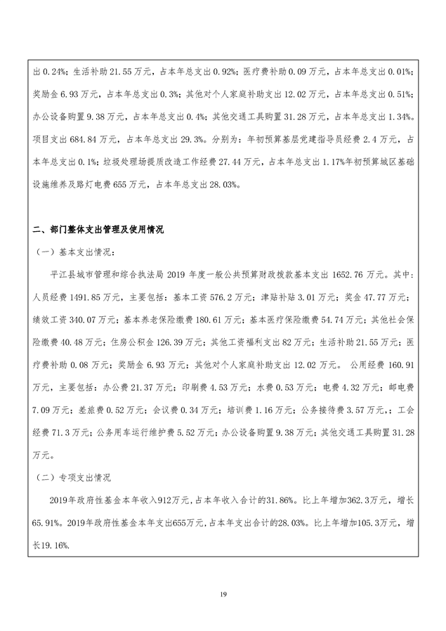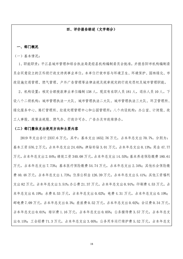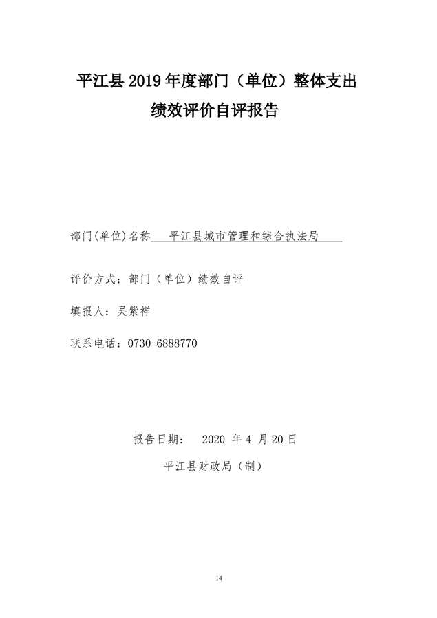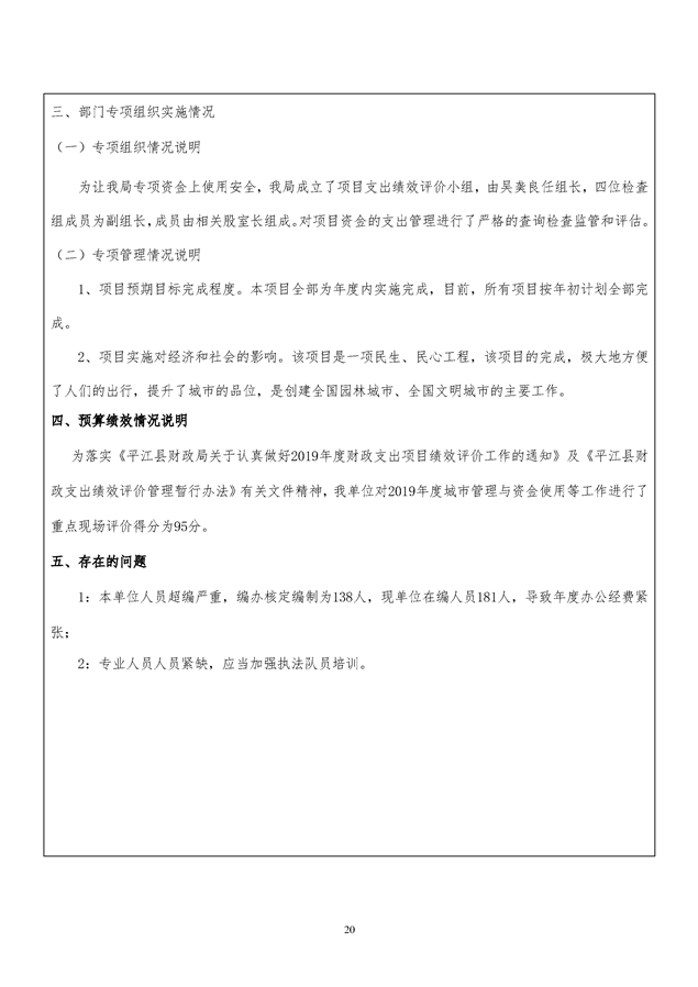 平江县城市管理和综合执法局2019年度整体支出绩效自评