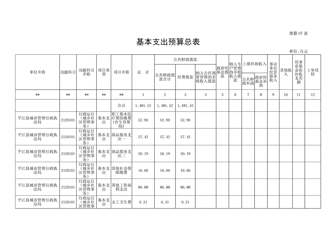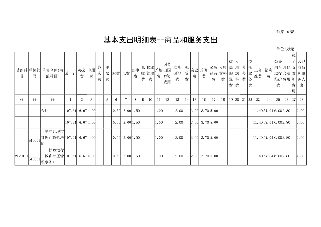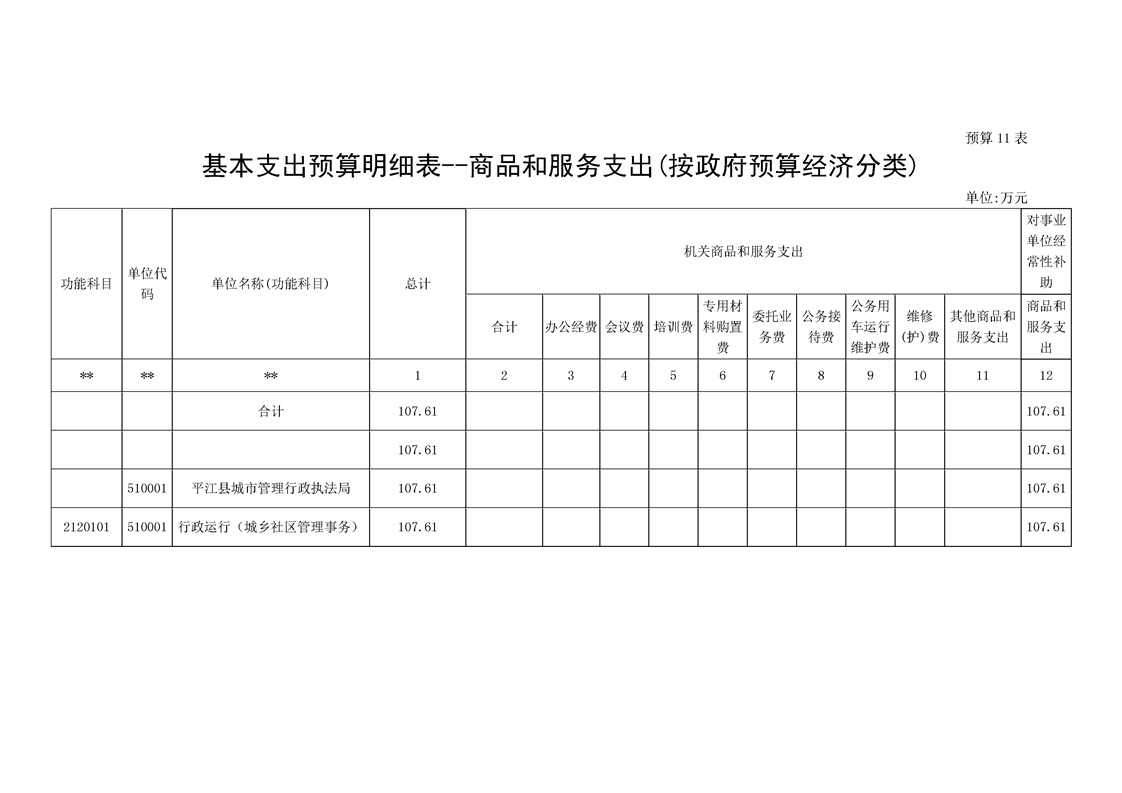 平江县城市管理和综合执法局2020年部门预算说明调整后